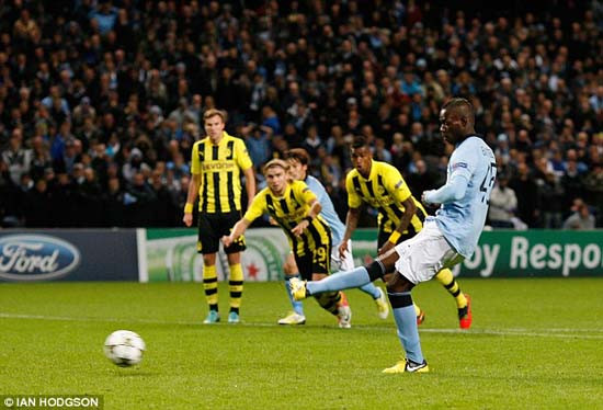 Chiến thắng tưởng chừng đã thuộc về đại diện nước Đức, thì đúng phút 88, trọngtài đã chỉ tay vào chấm phạt đền sau khi Subotic để bóng chạm tay trong vòng cấm từ cú móc bóng của Aguero. Trênchấm 11m, Mario Balotelli đã rất bình tĩnh và không phạm sai lầm nào để mang về1 điểm quý giá cho Man City.