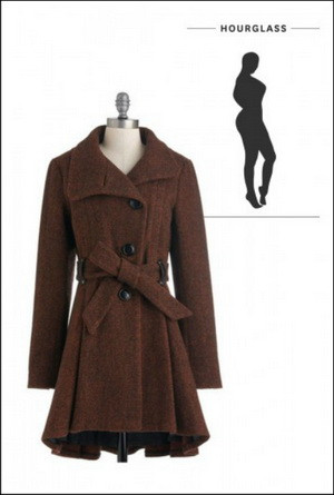 Bạn nên chọn cho mình những chiếc áo khoác có phần ngực được cắt cúp và may liôm sát vào vòng một và hai trong khi phần dưới thì xòe bồng. Đặc biệt, nhữngchiếc đai to hay thắt lưng sẽ giúp tôn vòng eo tuyệt đẹp của bạn.