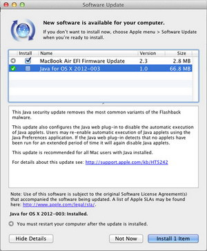 Hiện giờ, người dùng Mac đã có thể tải về “Java for OS X Lion 2012-003” từ tínhnăng cập nhật phần mềm đã được tích hợp sẵn trên OS X./.