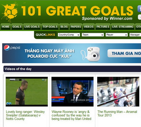 Trang video thể thao 101 greatgoals thì đã giật dòng tít:"The Running Man - Arsenal Tour 2013" và đặt ở một trong 3 vị trívideo nổi bật trong ngày.