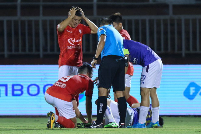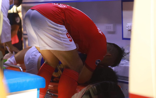 Ám ảnh hơn là khoảnh khắc tiền vệ Hà Nội FC khóc nức nở, nằm trên cáng, lên thẳng xe cứu thương và đến bệnh viện với chiếc chân phải gãy làm đôi. Trong khi đó, Hoàng Thịnh liên tục nắm tay nói lời xin lỗi muộn màng cũng trong nước mắt.