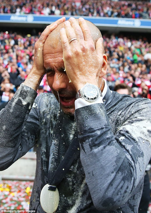 Pep Guardiola đã được các học trò cho 'tắm bia'