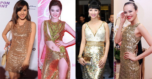Lý Nhã Kỳ, Trà My, Ngọc Quyên, Minh Hằng... đều bị hấp dẫn bởi chất liệu vảinhung, ánh kim lấp lánh hay trang phục quân đội.