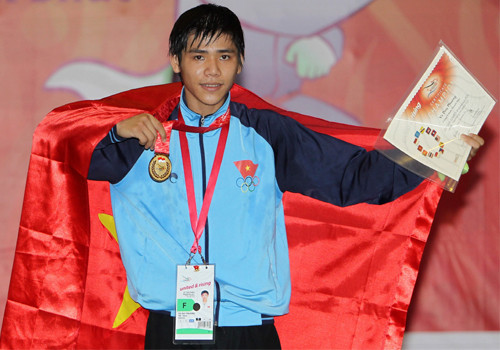 Võ sỹ Võ Nguyên Phương nhận HCV hạng cân dưới 55 kg nam