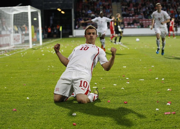 Xherdan Shaqiri đã được huấn luyện viên Hitzfeld gọi vào đội tuyển quốc giaThụy Sĩ tham dự vòng chung kết World Cup 2010 trên đất Nam Phi dù khi đó anh chỉ18 tuổi và mới khoác áo câu lạc bộ Basel 31 trận. Năm ngoái, chính Shaqiri là người ghi bàn cho Thụy Sĩ trong trận thua Anh 1-3 tại vòng loại Euro 2012, với một cú sút "cháy lưới" Joe Hart.