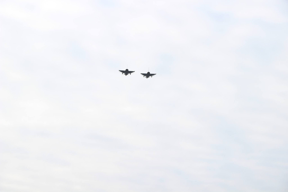 Hai chiến đấu cơ của Đức bay lên bầu trời hộ tống chuyên cơ của Chủ tịch nước Trương Tấn Sang và phu nhân vào không phận nước này (Ảnh: Trần Mạnh Hùng/Vietnam+)