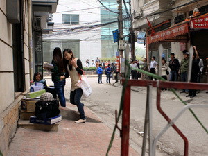 Người dân di rời đồ đạc ra khỏi ngôi nhà. (Ảnh: Tuấn Anh/TTXVN)