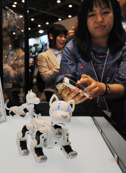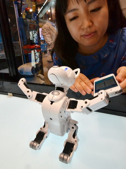 Robot "i-Sodog" cao 15cm, nặng 400g, được trang bị 15 bộ khởi động từ vàcó thể nhận biết được giọng nói của con người.