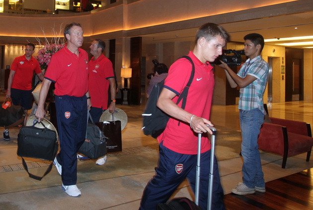 Lịch đến của Arsenal đã được đẩy sớm lên tới tận 45 phút, tức ngay sau trận đấu với Indonesia Dream Team, đoàn quân của ông Arsene Wenger chỉ kịp tắm rửa, ăn uống rồi lên đường tới Hà Nội.