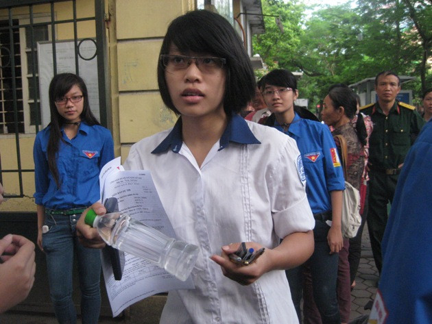 Thí sinh chuẩn bị bước vào phòng thi với nét mặt lo lắng. (Ảnh: PV/Vietnam+)