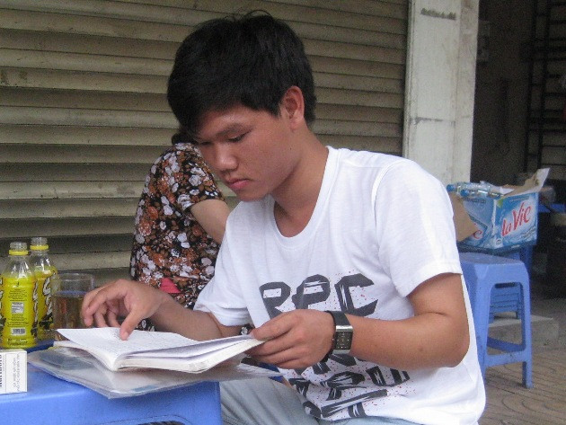 Tranh thủ đọc tờ báo để biết thêm thong tin về kỳ thi Đại học. (Ảnh: PV/Vietnam+)