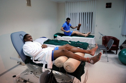 Tiền đạo Yann M'Vila được chăm sóc bằng vật lý trị liệu