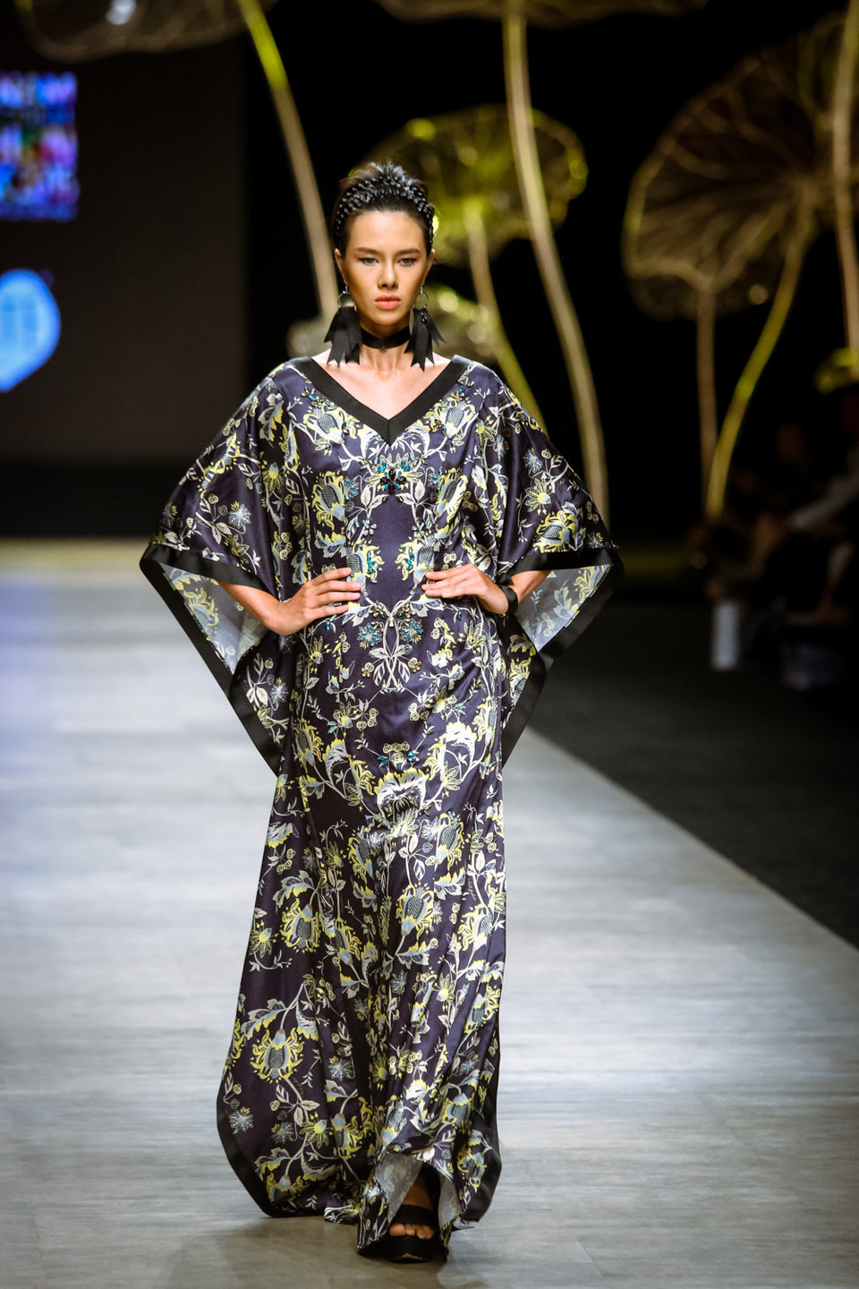 Phần hai của buổi diễn là các thiết kế đầm dạ hội, tông đen chủ đạo, trên nền chất liệu lụa và satin để làm nổi bật vẻ đẹp có phần u tối nhưng luôn tràn trề sức sống của khu vườn.