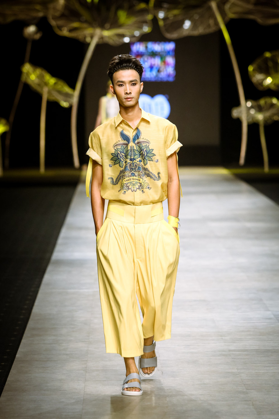 Các tông màu pastel như vàng, trắng, hồng được Victoria Huyền Nguyễn ứng dụng với các phom dáng căn bản như quần cullottes, quần Alibaba hay áo sơmi.