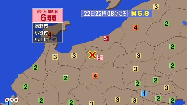 Theo nguồn tin từ làng Hakuba, tỉnh Nagano, hiện đã có thông tin về người bị thương tại 4 địa điểm trong làng và cơ quan chức năng đang nhanh chóng xác nhận. Thông tin cho hay có người mắc kẹt trong đống đổ nát tại một khu nhà bị sập trong làng.