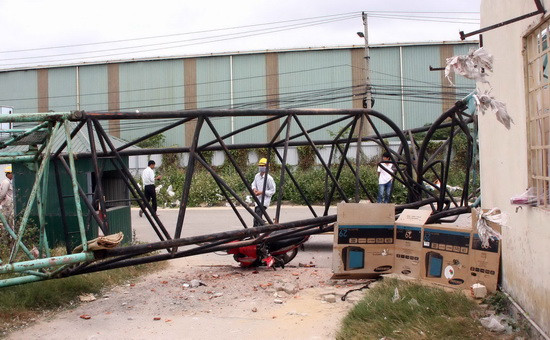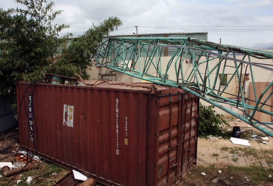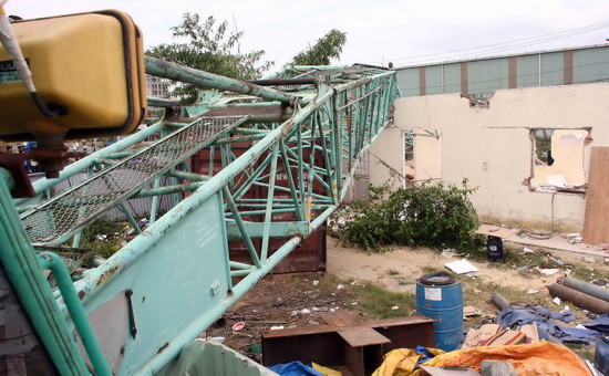 Tại hiện trường cần cẩu gãy gập còn đè lên một ngôi nhà bỏ trống đangtháo dỡ và làm sập tường rào che xung quanh khu vực thi công. Rất may lúc nàykhông có công nhân làm việc bên dưới.