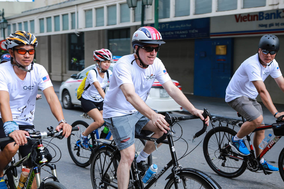 Ngài Ted Osius, Đại sứ Hoa Kỳ tại Việt Nam đạp xe kêu gọi bảo vệ tê giác. (Ảnh: Minh Sơn/Vietnam+)