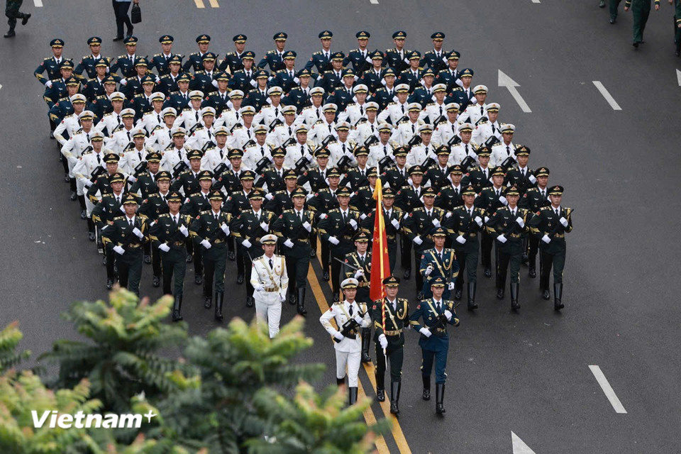 Đoàn quân nhân Trung Quốc tham gia buổi Tổng duyệt cấp Nhà nước Lễ kỷ niệm, diễu binh, diễu hành 80 năm Cách mạng Tháng Tám thành công và Quốc khánh 2/9, tại Quảng trường Ba Đình.