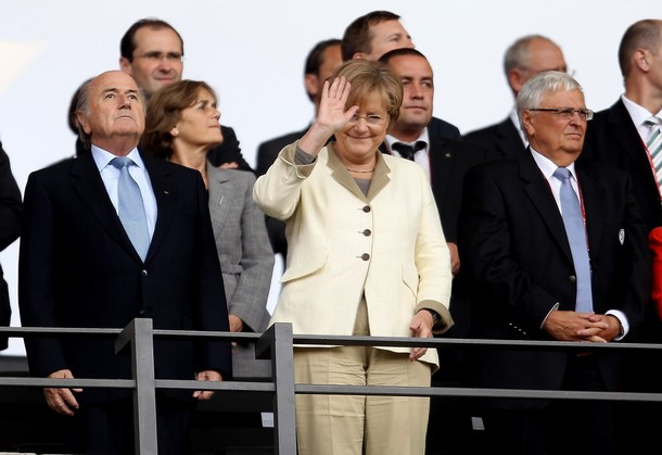Trên khán đài danh dự sân Olympic ở Berlin trận này có cả Tổng thống ĐứcChristian Wullf , Thủ tướng Angela Merkel và Chủ tịch FIFA Sepp Blatter, sau lễkhai mạc hoành tráng chẳng kém gì World Cup dành cho bóng đá nam diễn ra cáchđây 5 năm tại Đức.