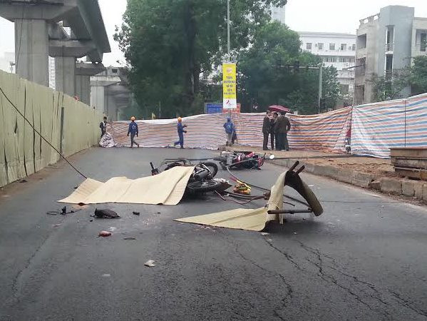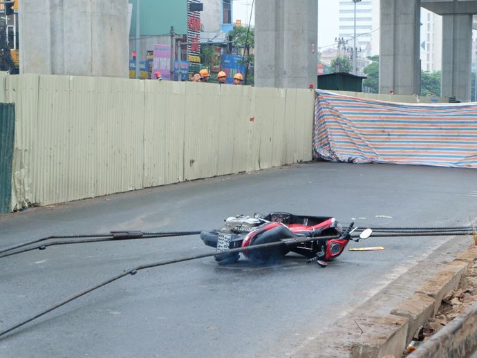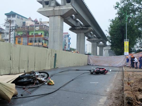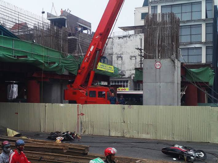 Hiện trường vụ tai nạn tại công trường đường sắt đô thị Cát Linh-Hà Đông. (Ảnh: Sơn Bách/Vietnam+)