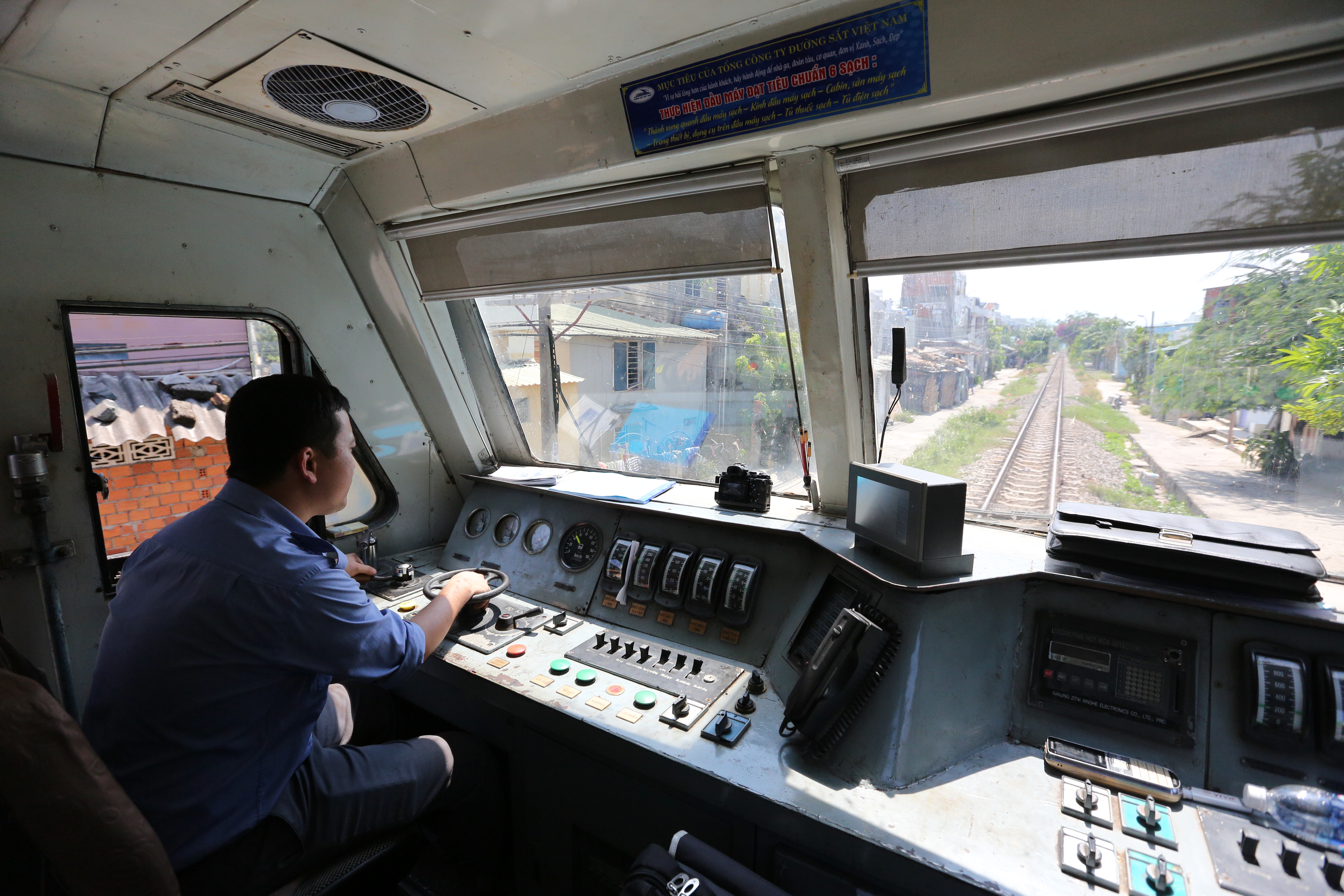 Đầu máy Đổi Mới dài 16,8m, phần lớn là chỗ để máy, cabin dành cho lái chính và lái phụ rất