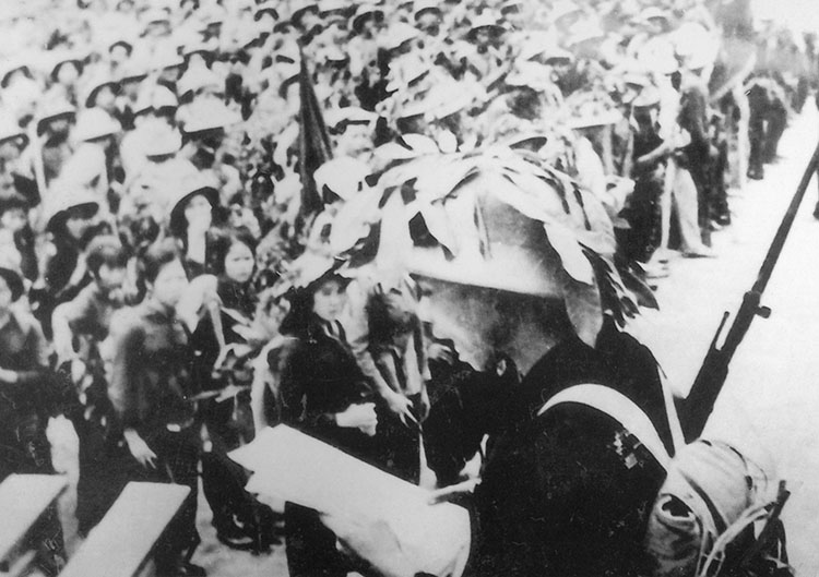 Tự vệ Đường sắt mít tinh hưởng ứng lời kêu gọi của Hồ Chủ tịch "Không có gì quý hơn Độc