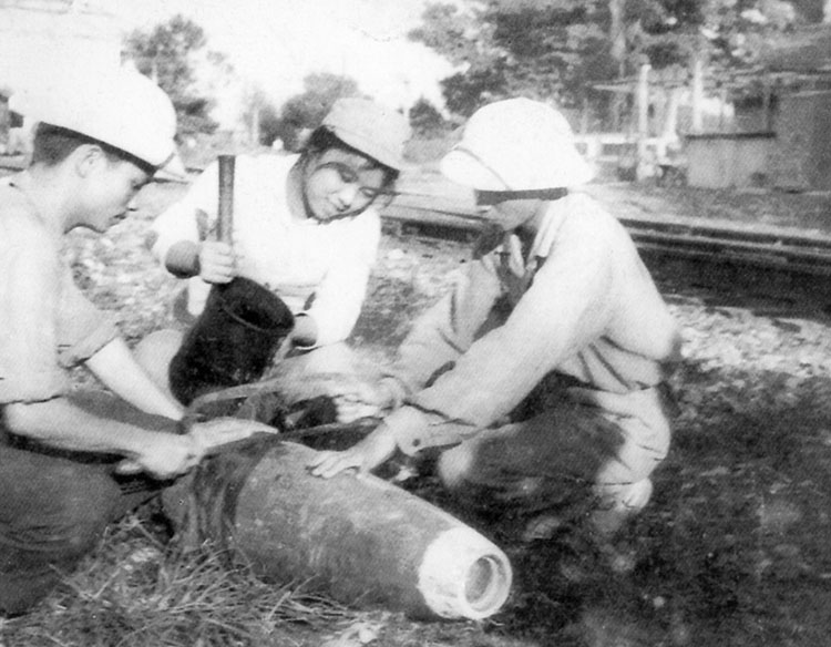 Thanh niên xung phong đường sắt phía Nam đang làm nhiệm vụ phá bom Mỹ.