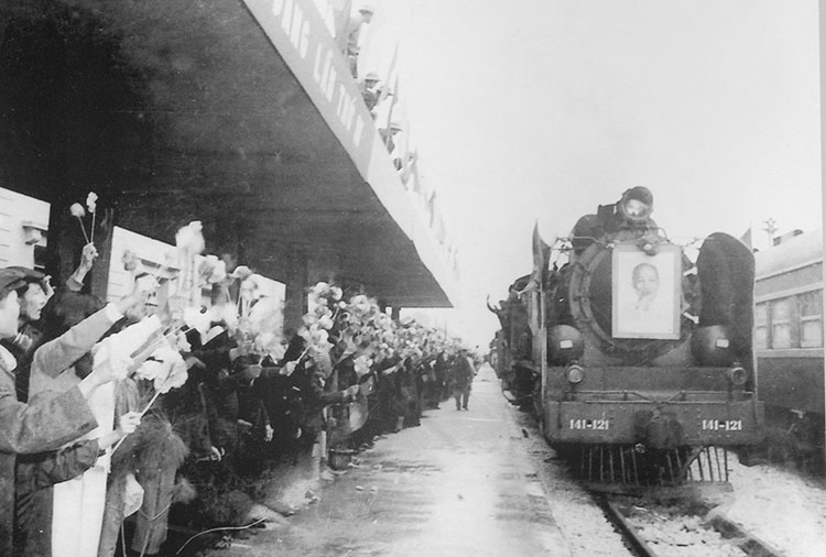 Bác Hồ trên chuyến tàu từ Hải Phòng về Hà Nội ngày 21/10/1946.