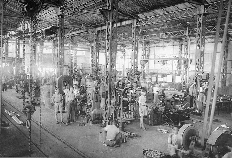 Một xưởng máy của Nhà máy Xe lửa Gia Lâm năm đầu đi vào hoạt động (1905).