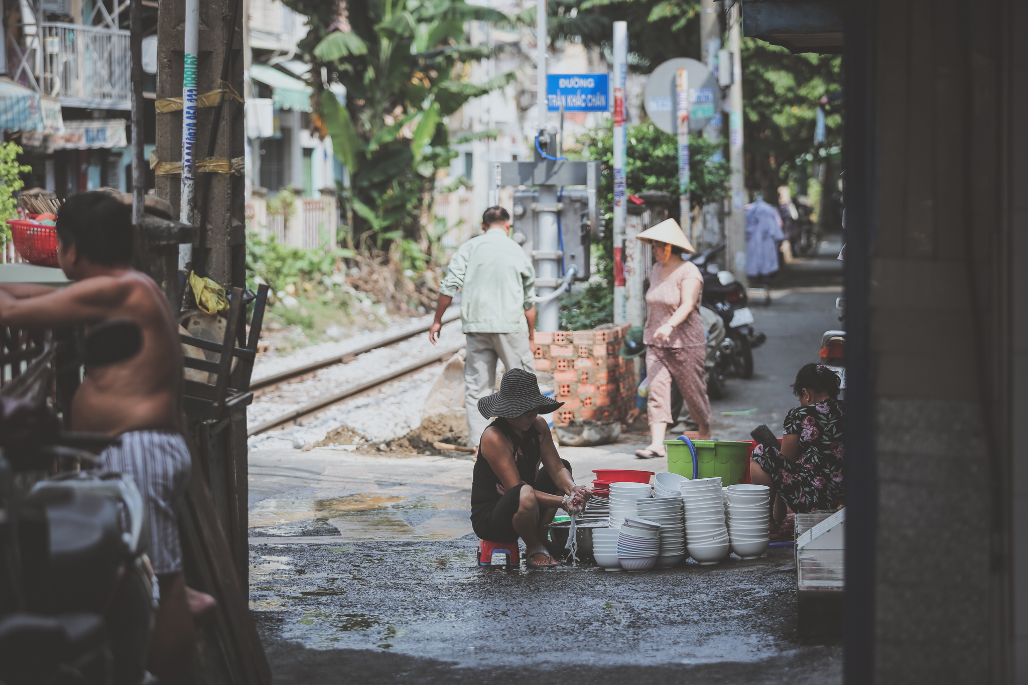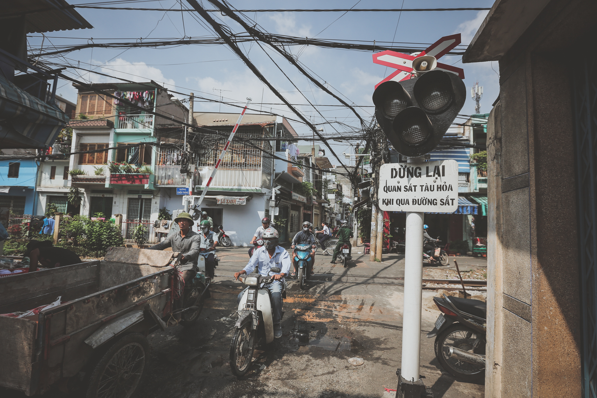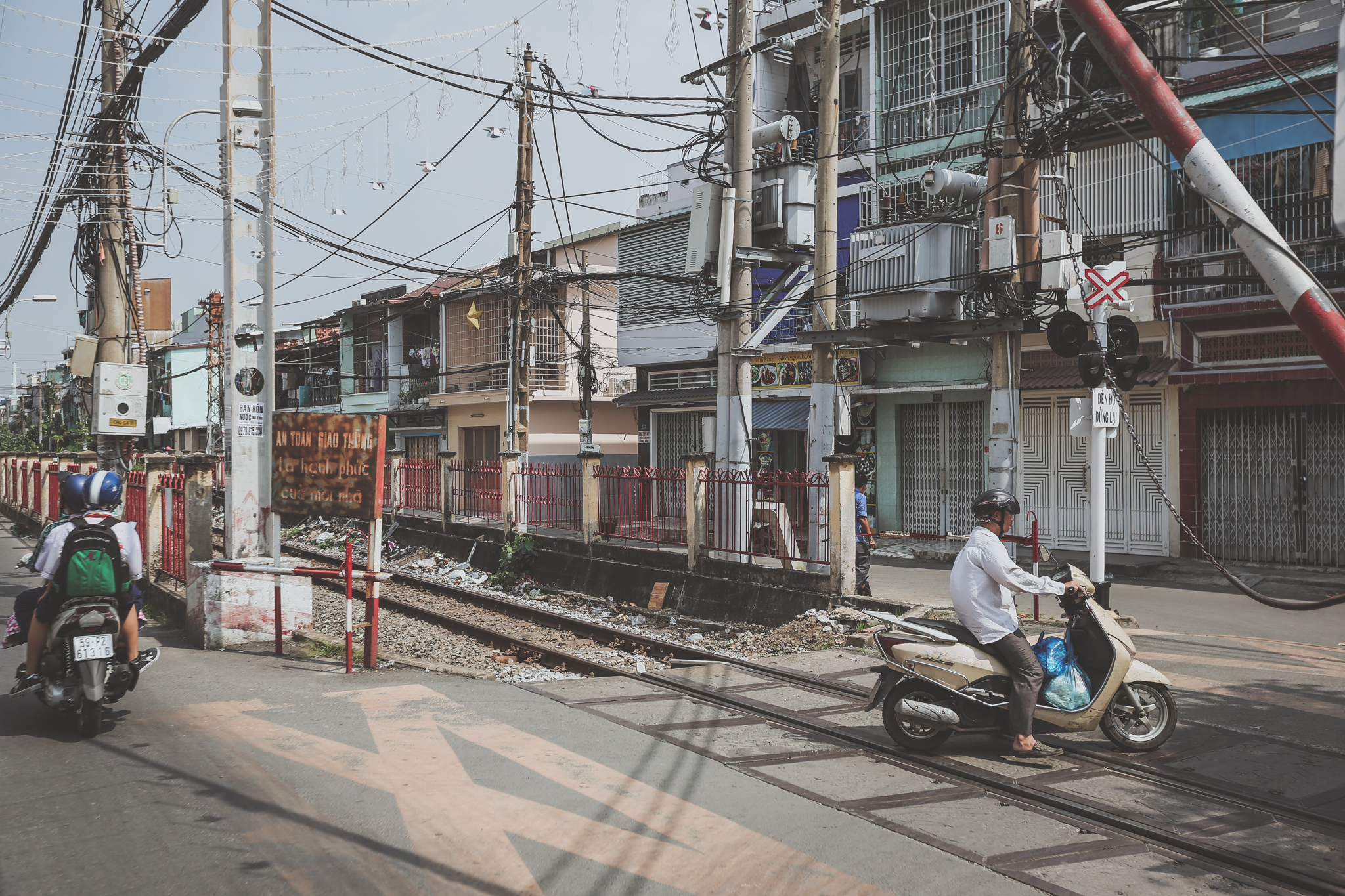Cũng giống như các xóm đường tàu khác của Sài Gòn, xóm giao lộ đường Chiến Thắng và Trần Khắc Chân (Quận Phú Nhuận) khá nhộn nhịp dù là ngày hay đêm. Mỗi ngày có khoảng 10 chuyến tàu chạy qua. Ở đây, chuyện nghe thấy tiếng còi tàu là điều hết sức bình thường. Thế nhưng dù đã quen như thế, người dân ở đây vẫn rất vui khi nhìn thấy sự xuất hiện của những chuyến tàu, dù cho họ không hề sống bám vào nó. (Ảnh: Minh Sơn/Vietnam+)