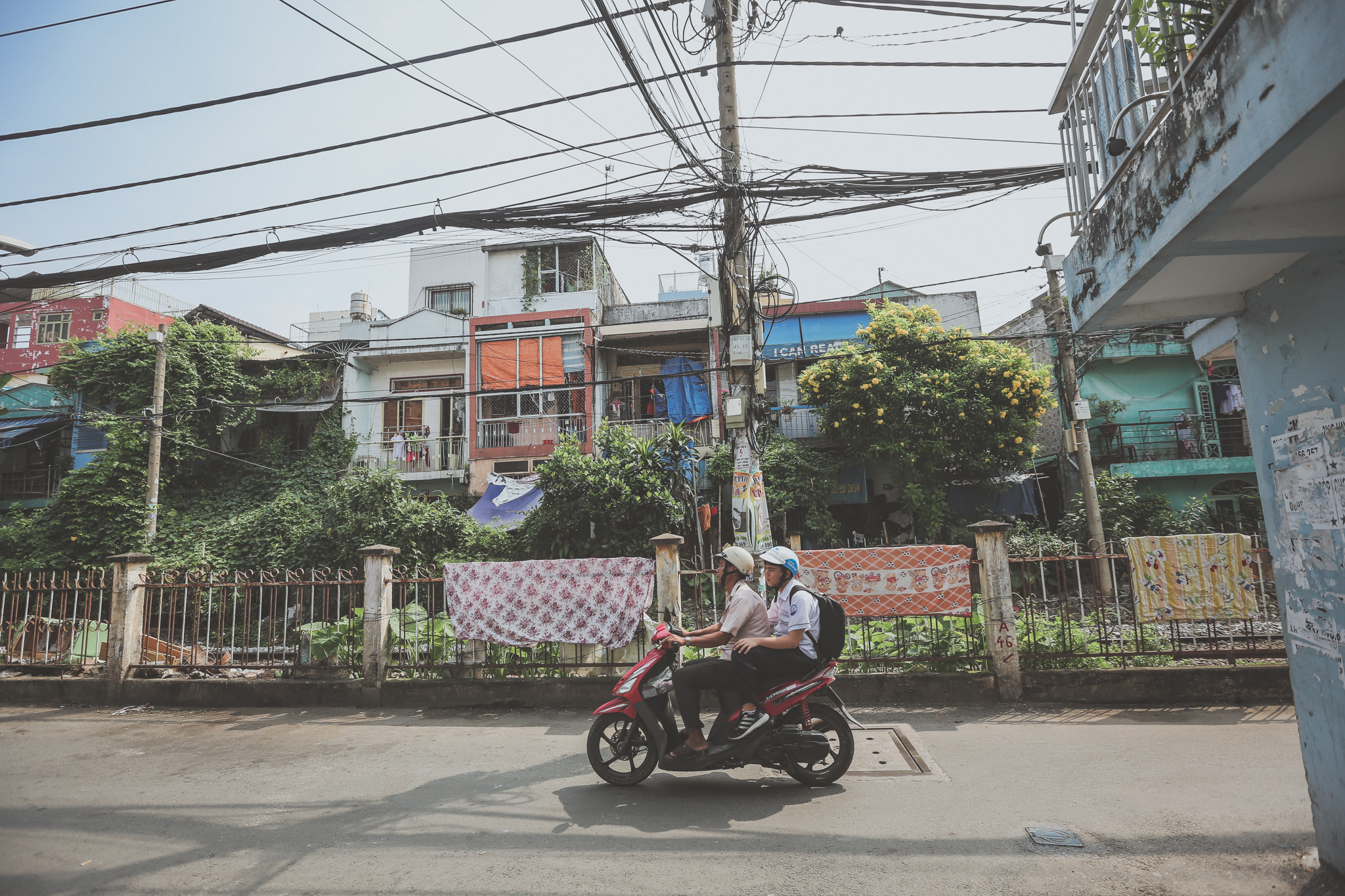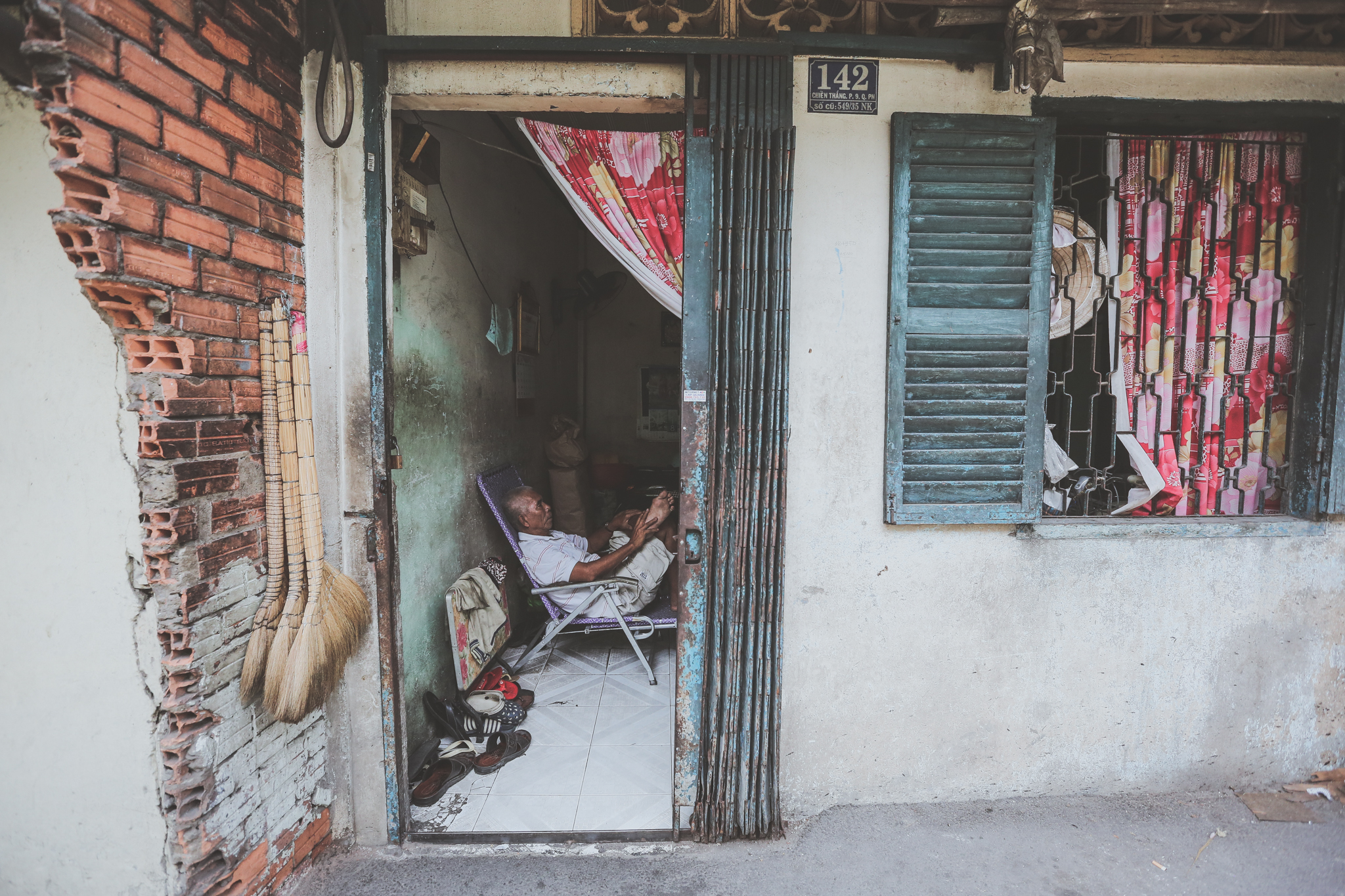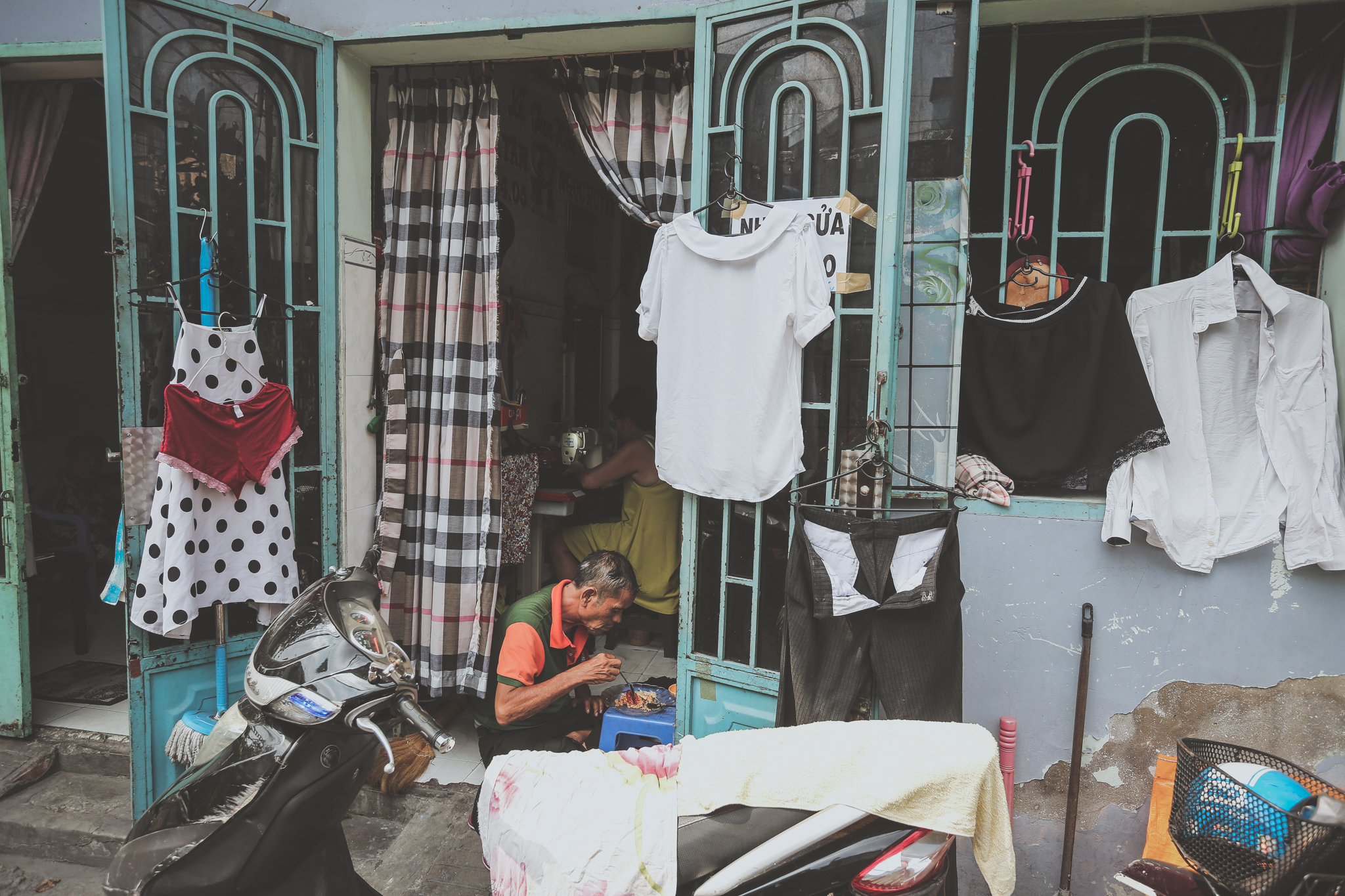 Sài Gòn bề nổi là một thành phố lộng lẫy, sực nức mùi thơm và những nhà hàng tiệm ăn sang trọng. Nhưng vẫn còn đó một Sài Gòn của những người lao động sống trong những con hẻm nhỏ đầy bụi bặm, cáu bẩn như xóm đường tàu. (Ảnh: Minh Sơn/Vietnam+)