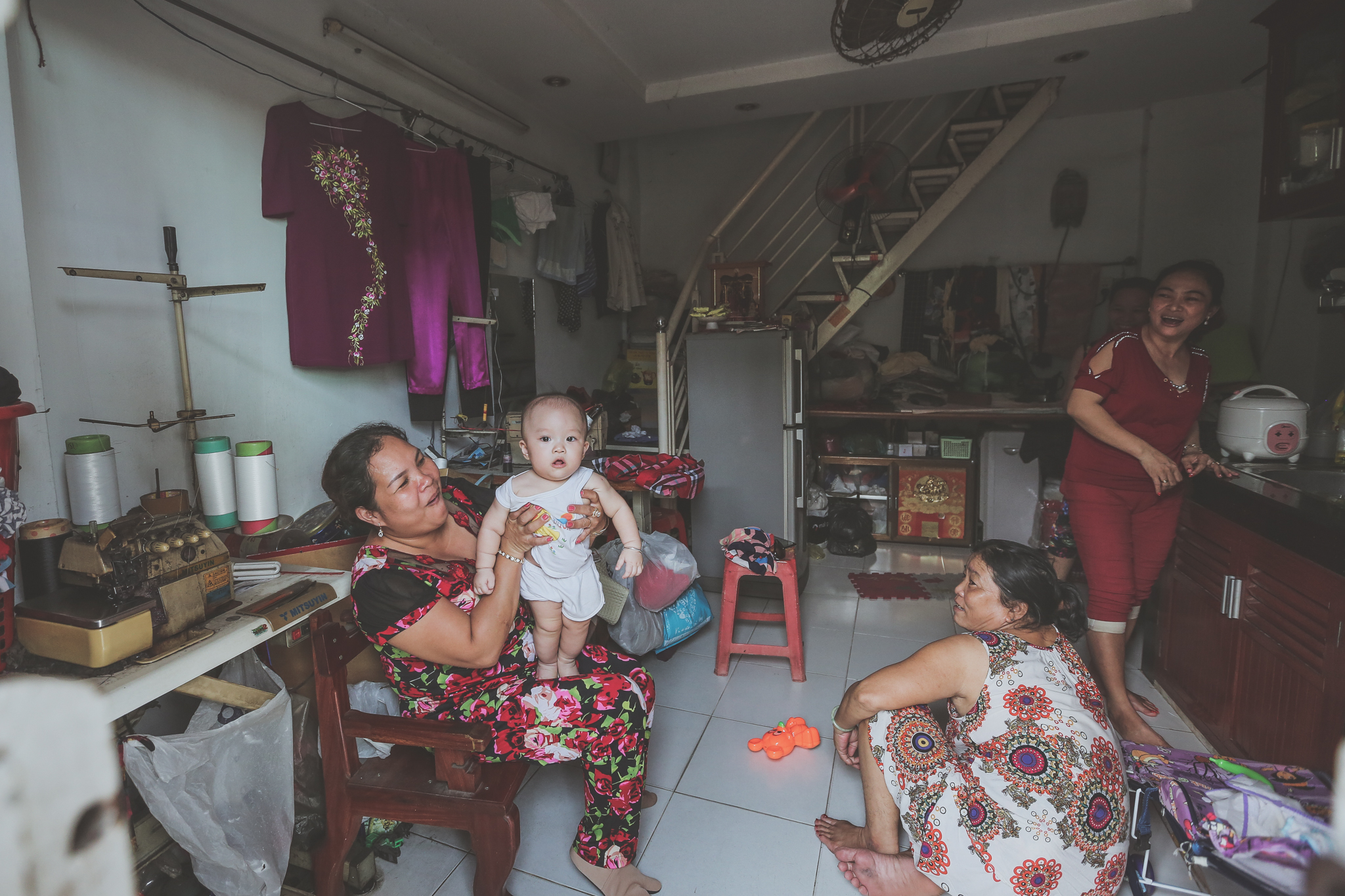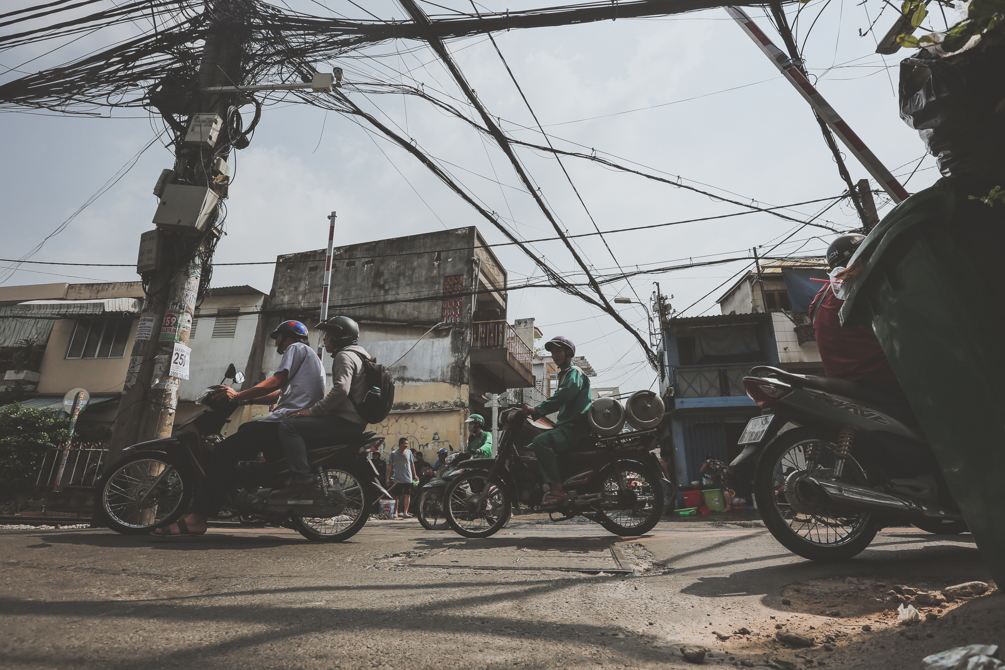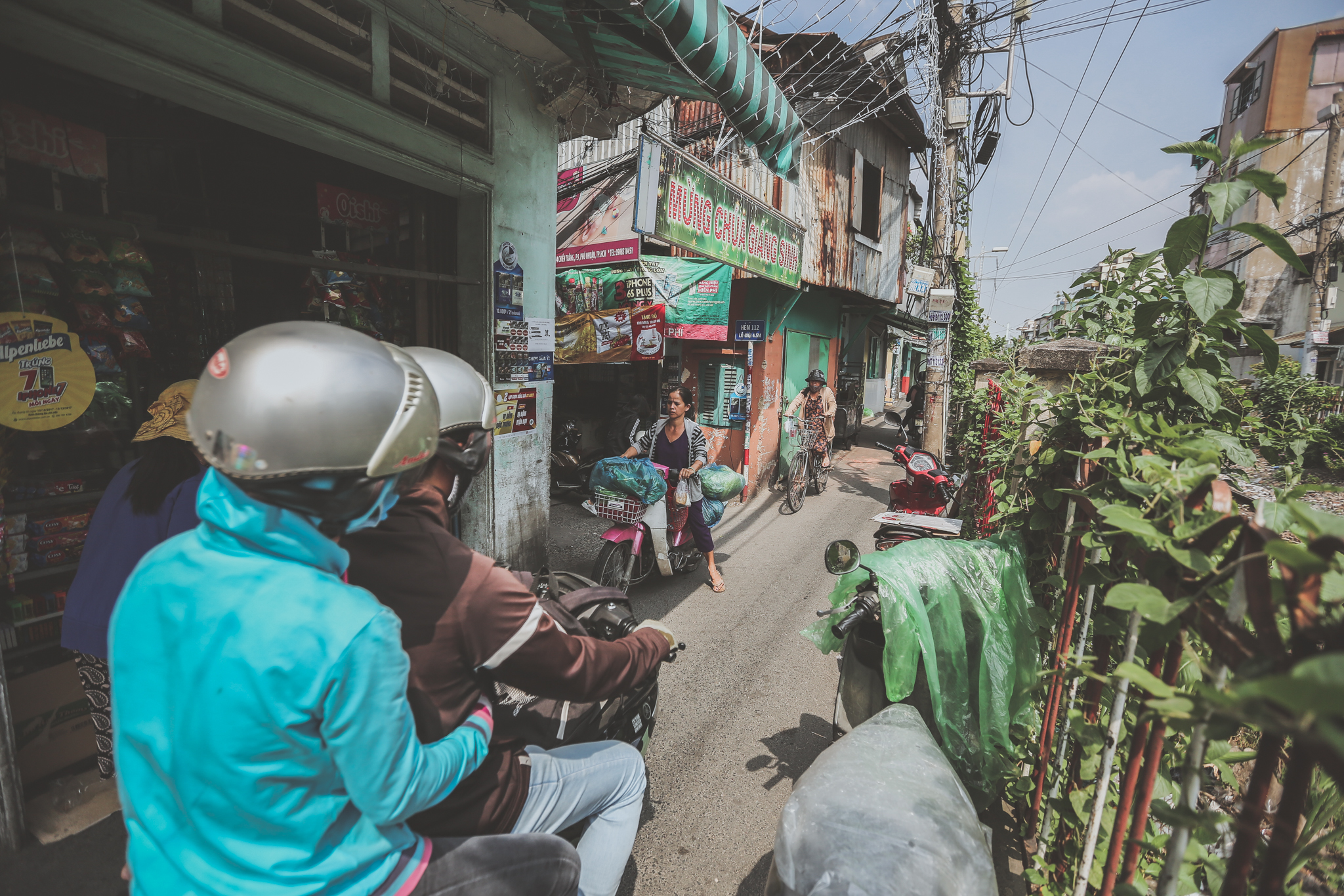 Sài Gòn bề nổi là một thành phố lộng lẫy, sực nức mùi thơm và những nhà hàng tiệm ăn sang trọng. Nhưng vẫn còn đó một Sài Gòn của những người lao động sống trong những con hẻm nhỏ đầy bụi bặm, cáu bẩn như xóm đường tàu. (Ảnh: Minh Sơn/Vietnam+)