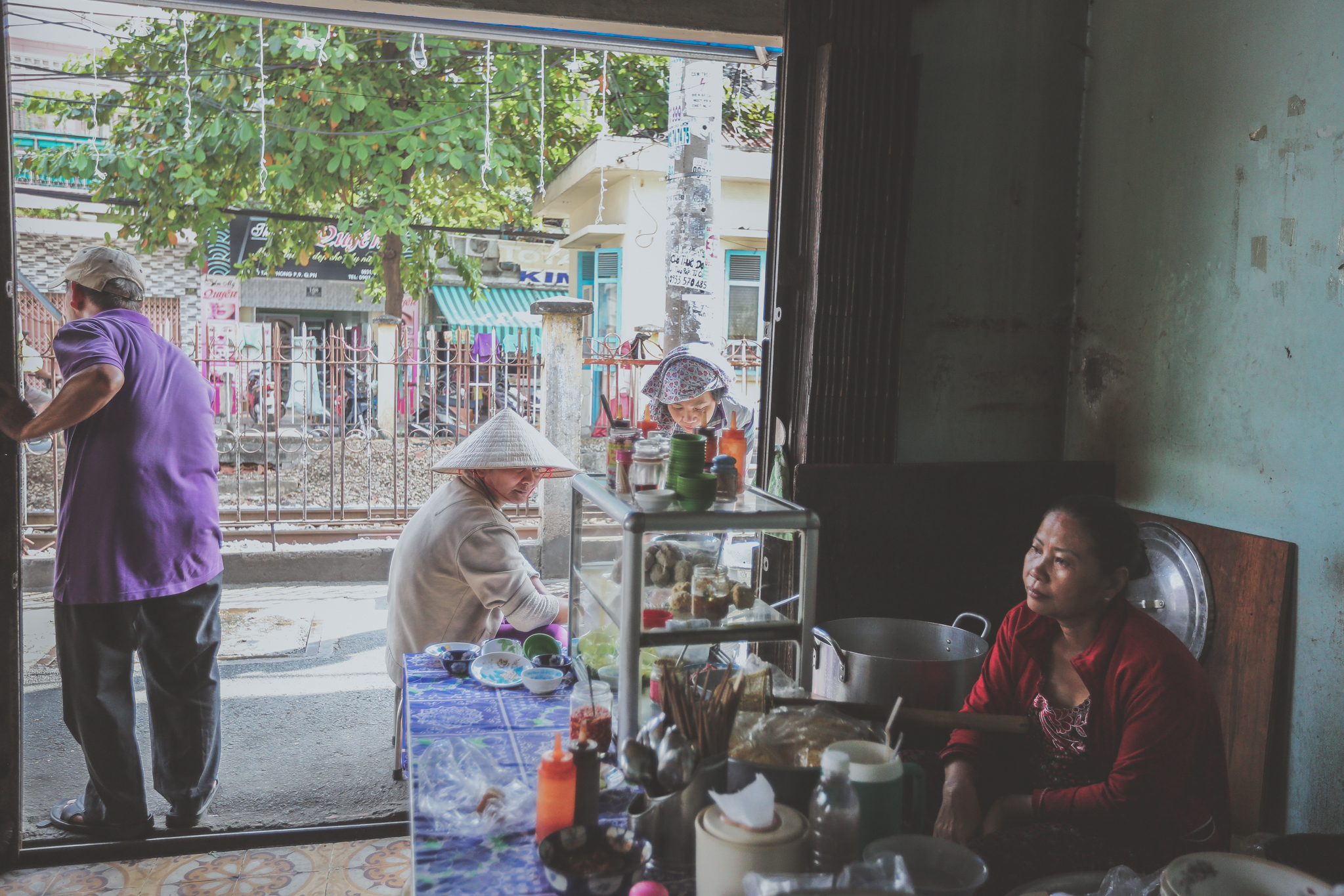 Cô Ngô Thị Hồng vốn là người Nam Định gốc đã bán hủ tiếu hơn 30 năm cạnh đường ray tâm sự, ngày xưa chưa có hàng rào, mỗi chiều người ta hay tụ tập, cười đùa nói chuyện với nhau vui lắm. (Ảnh: Minh Sơn/Vietnam+)