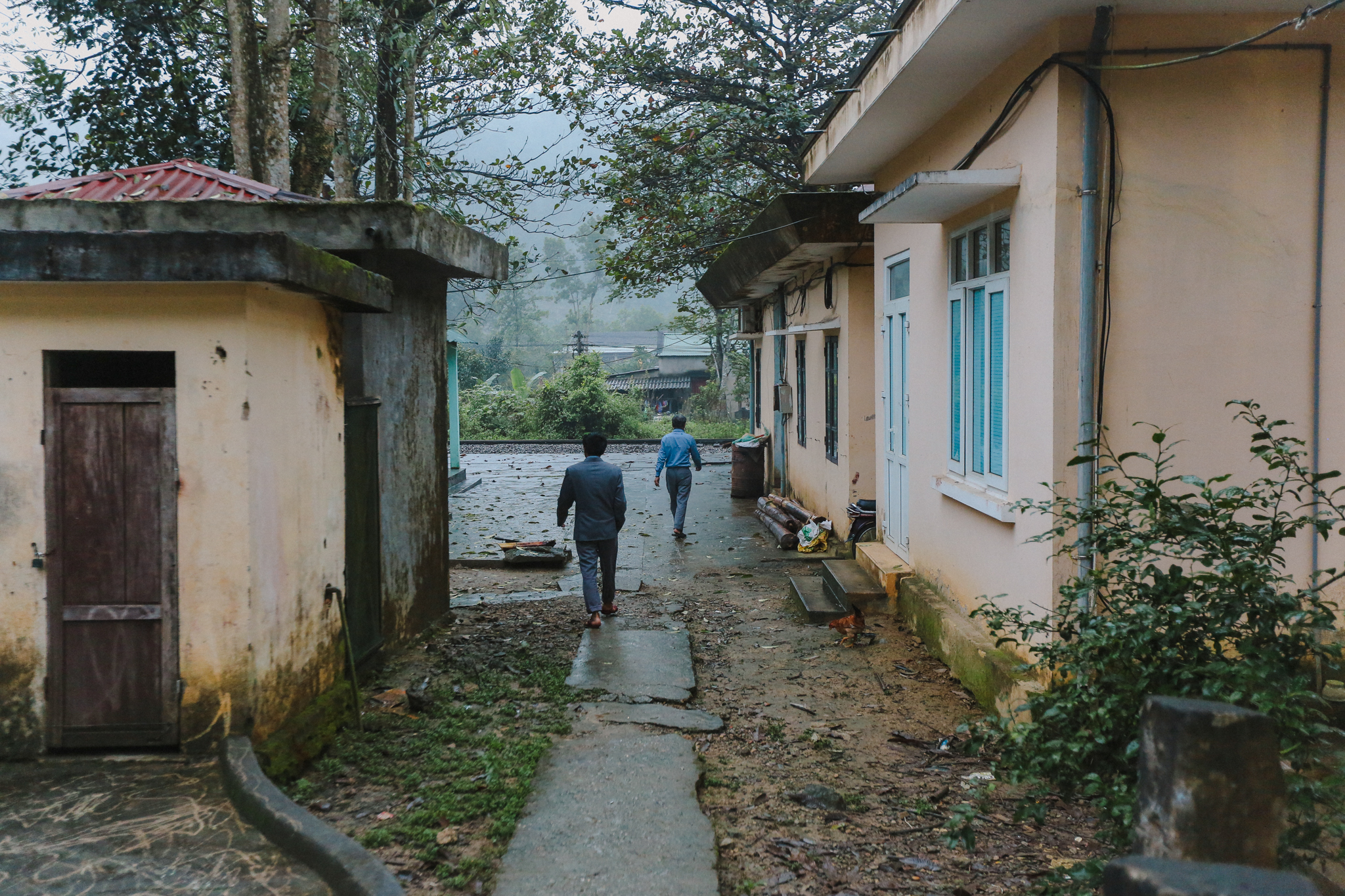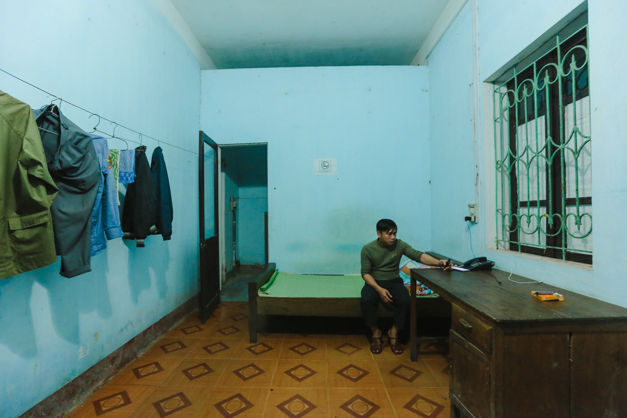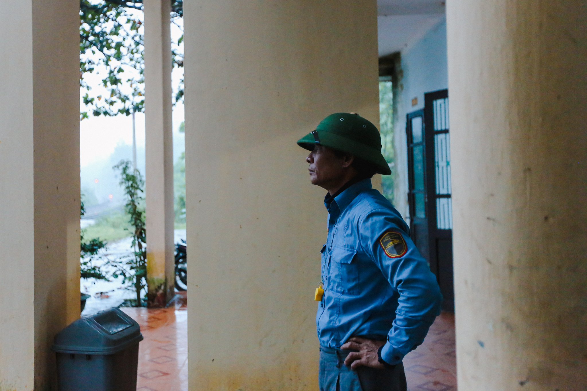 Ngồi nhìn ra sân ga ướt nhẹp, bố Ninh - người có thâm niên “cắm núi, canh tàu” lâu nhất trên đèo Khe Nét khe khẽ thở dài. Dù sắp về hưu rồi mà lương hết bậc của ông sau khi trừ đầu trừ cuối chỉ còn lại hơn 5 triệu. “Lũ trẻ mới vào còn vất vả hơn nhiều,” người nhân viên có hơn 30 năm gác đèo trầm ngâm. (Ảnh: Minh Sơn/Vietnam+)
