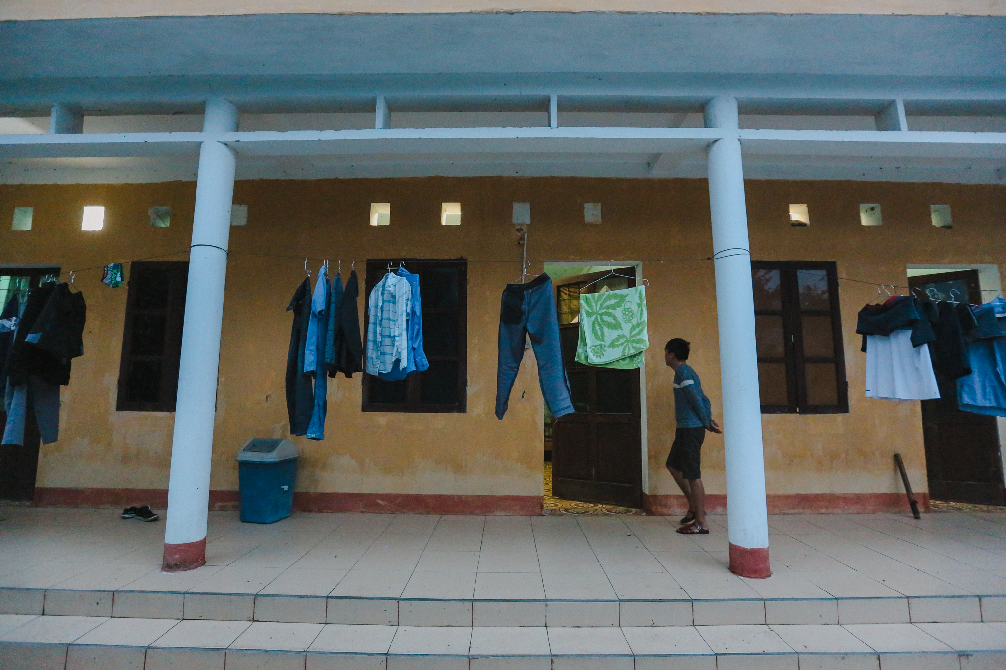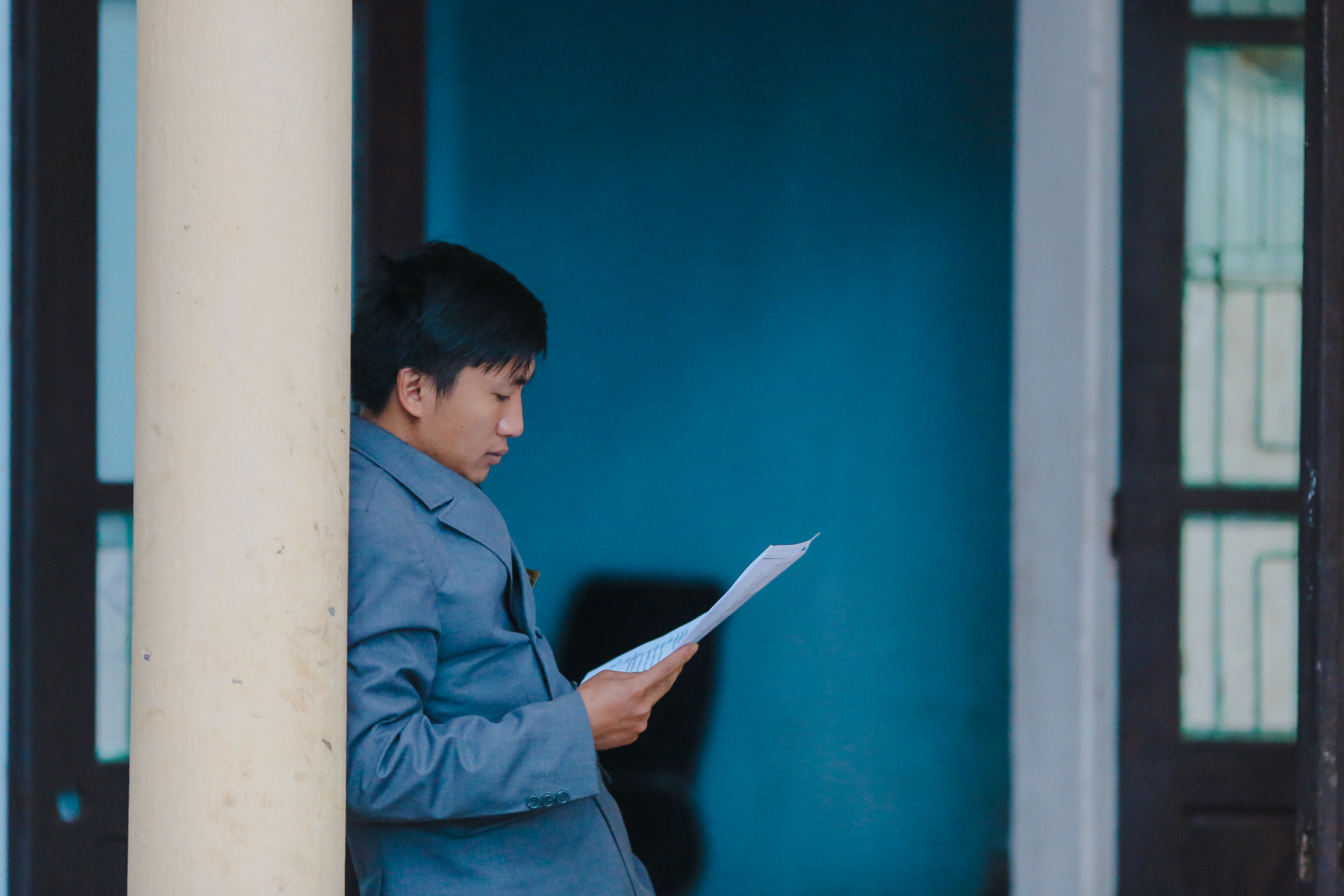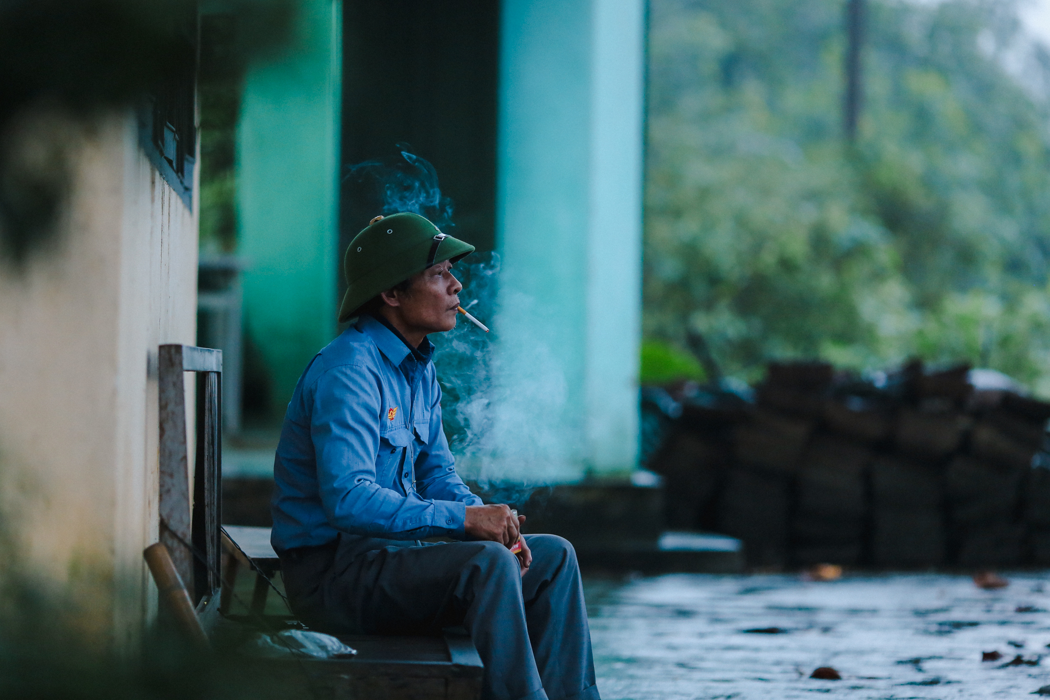Ngồi nhìn ra sân ga ướt nhẹp, bố Ninh - người có thâm niên “cắm núi, canh tàu” lâu nhất trên đèo Khe Nét khe khẽ thở dài. Dù sắp về hưu rồi mà lương hết bậc của ông sau khi trừ đầu trừ cuối chỉ còn lại hơn 5 triệu. “Lũ trẻ mới vào còn vất vả hơn nhiều,” người nhân viên có hơn 30 năm gác đèo trầm ngâm. (Ảnh: Minh Sơn/Vietnam+)