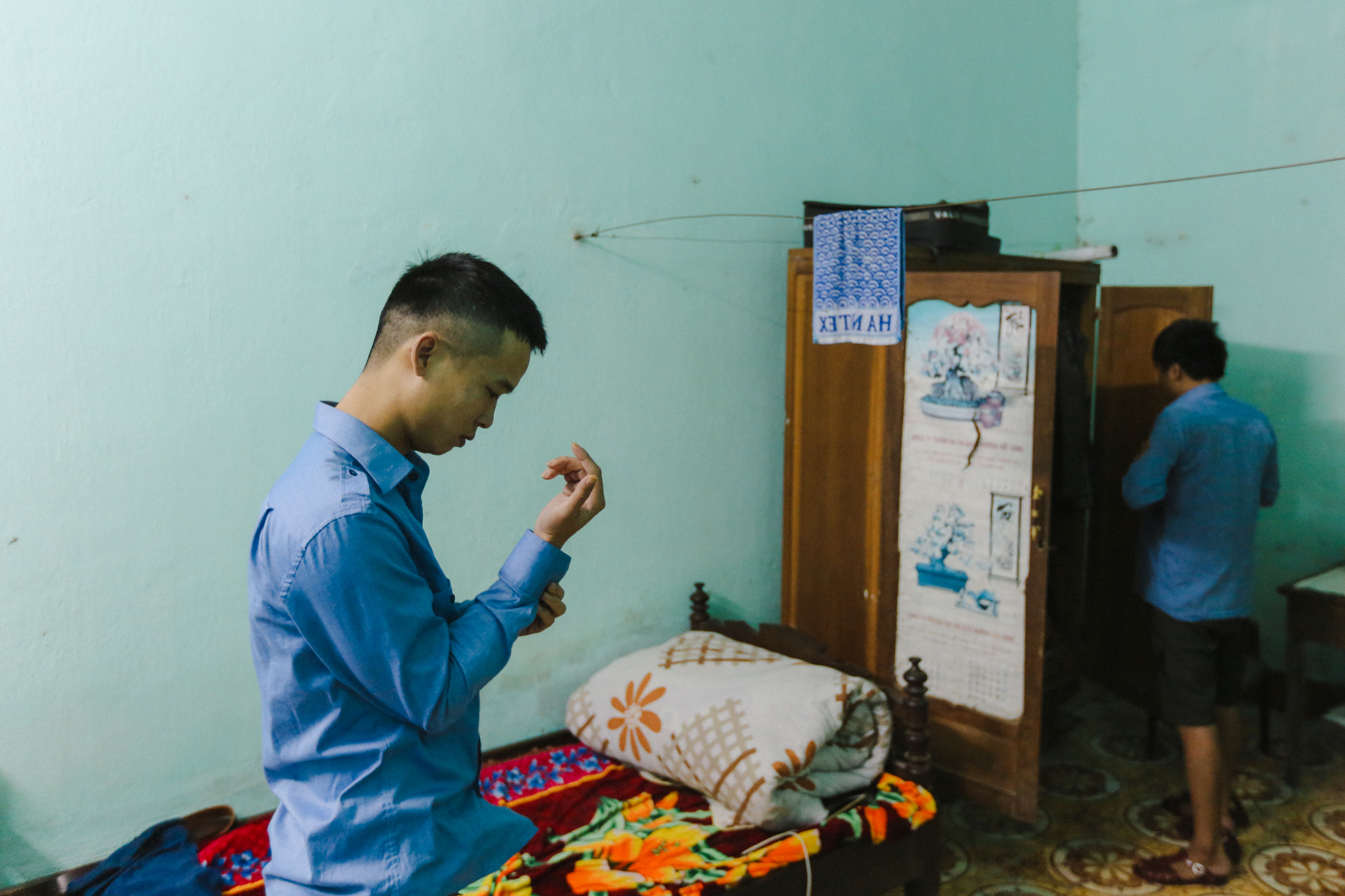 Trần Hữu Hoàng, quê ở tận Nghệ An về ga làm việc đã được vài năm. Hoàng vừa mới lấy vợ được độ 15 ngày ở quê thì phải khăn gói tất tả chạy lên ga làm việc ngay, còn chưa kịp hưởng "tuần trăng mật".(Ảnh: Minh Sơn/Vietnam+)