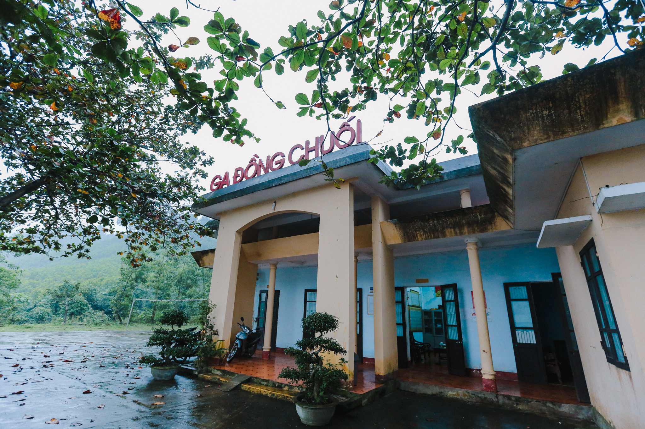 Mỗi ngày, Đồng Chuối đón và tiễn khoảng vài chục chuyến tàu vào ra, nhưng rất hiếm khi có tàu dừng lại ở trạm này. Cách đây vài năm, đoàn xe lửa duy nhất nghỉ chân trên ga đèo là VĐ31/32 vốn chạy tuyến Vinh-Đồng Hới cũng dừng hoạt động. Từ thời điểm ấy, ga trên sống lưng Khe Nét chính thức trở thành “đơn côi” đúng nghĩa, chỉ còn thấp thoáng hiện lên qua cửa sổ của những toa tàu. (Ảnh: Minh Sơn/Vietnam+)