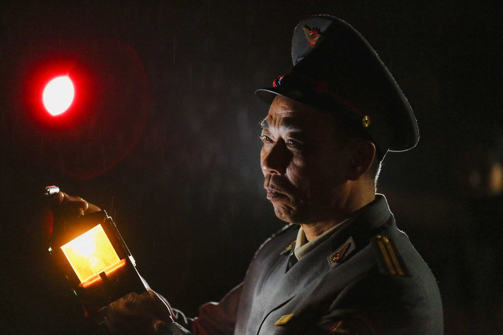 Khi màn đêm buông xuống, giữa rừng núi ngút ngàn, những con tàu đã mang tới cho những người như ông Tân niềm vui. Ánh đèn trên tàu lóe sáng, chuyến tàu đi qua an toàn là hơi ấm giúp ông Tân và 9 anh em khác trên ga Đồng Chuối vượt qua khó khăn cũng như sự cô đơn, hiu quạnh. (Ảnh: Minh Sơn/Vietnam+)