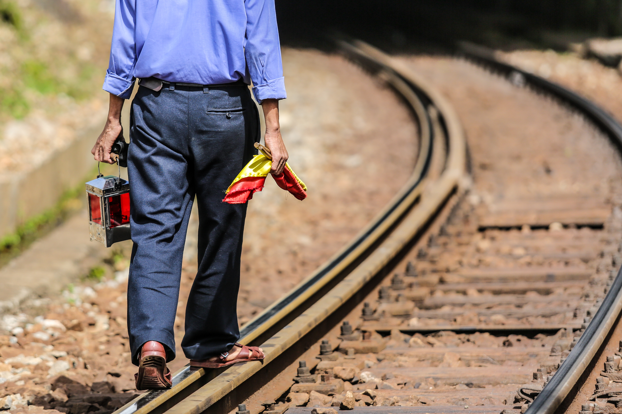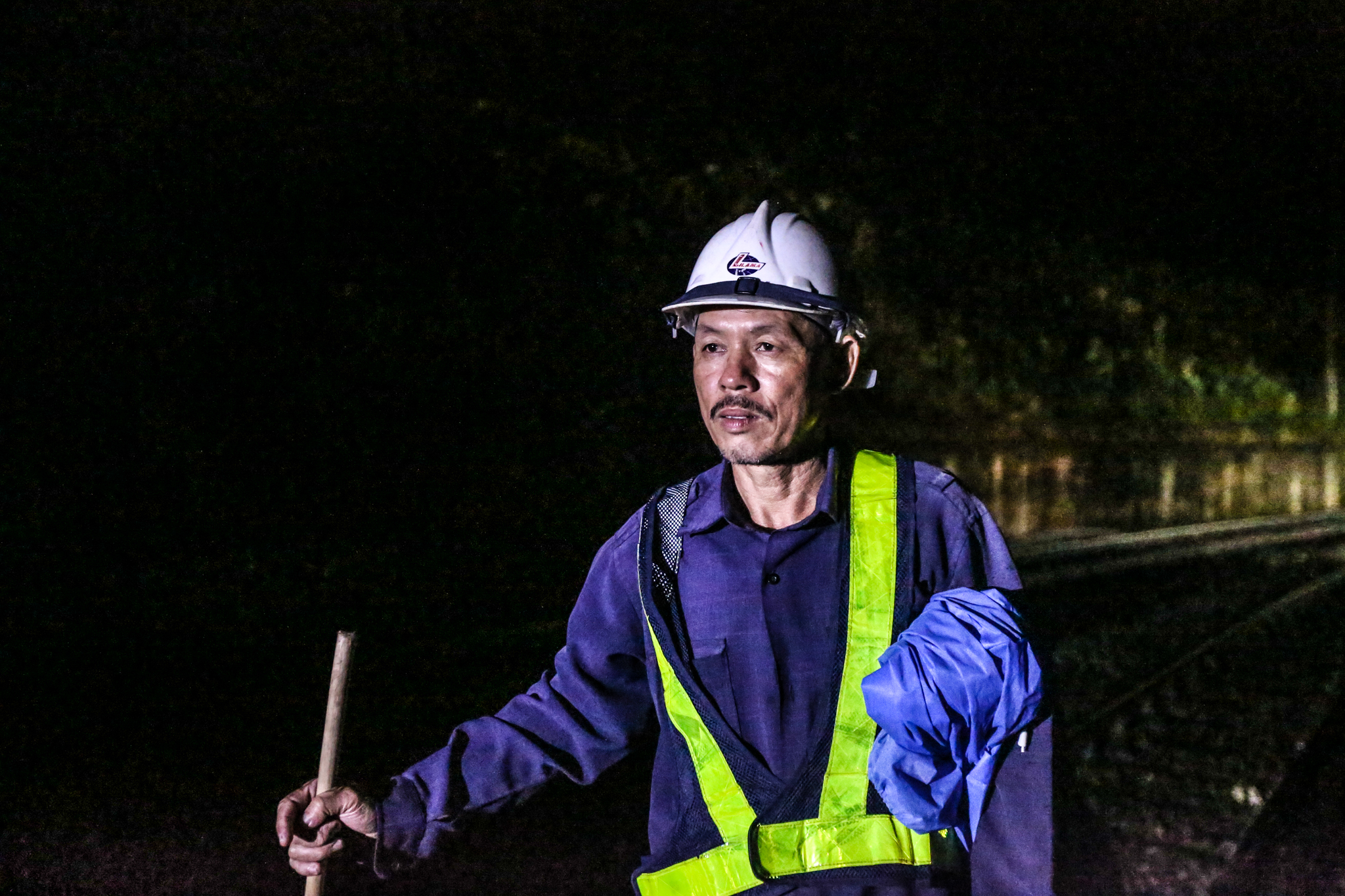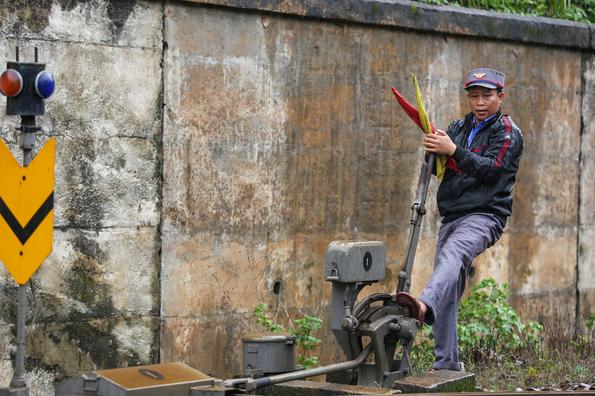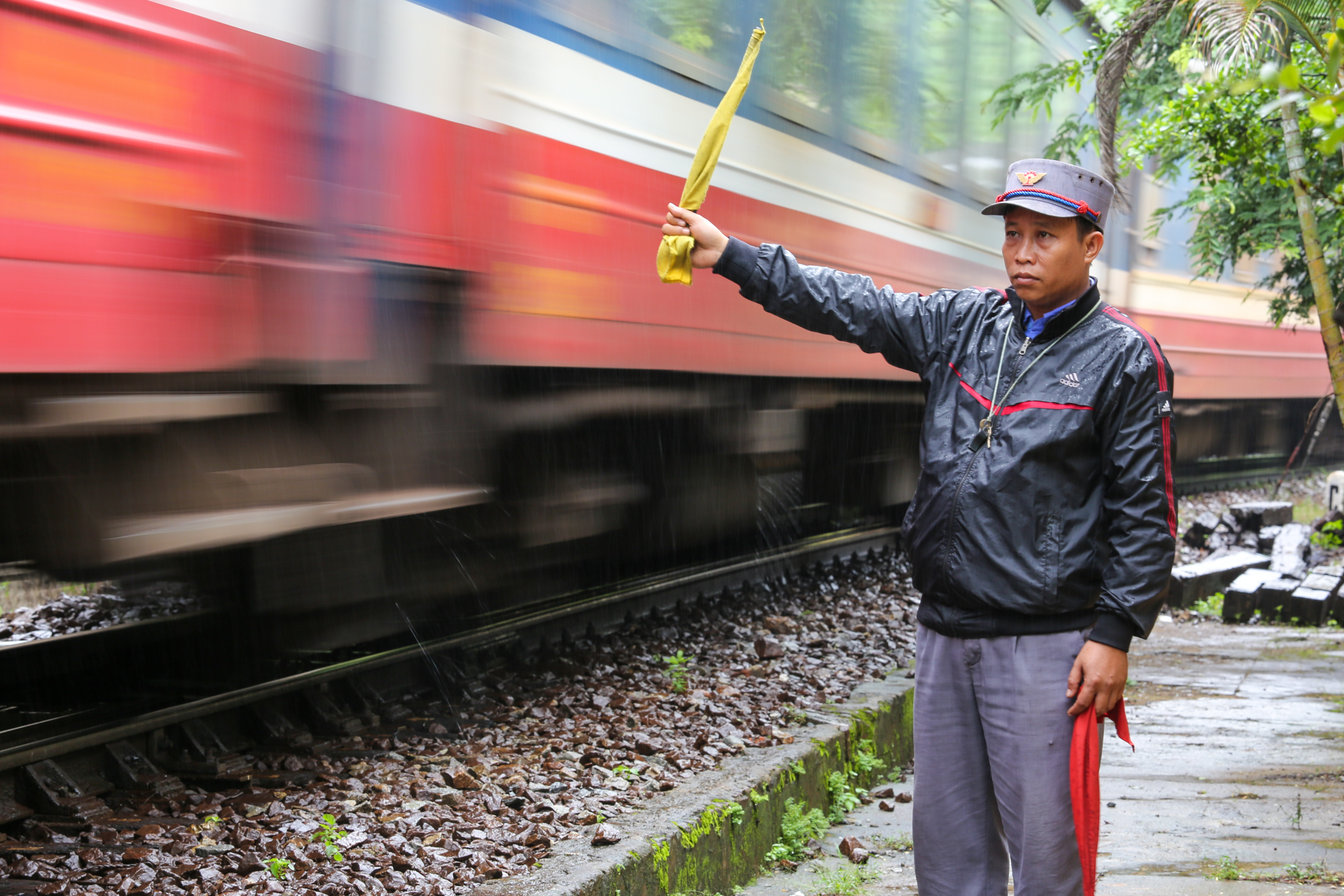 Nhiệm vụ chính của các công nhân thuộc hệ đi tuần là kiểm tra, phát hiện các hỏng hóc trên ray để kịp thời sửa chữa. Trong trường hợp có sự cố nghiêm trọng như có đất sạt lở, lũ cuốn trôi đường, họ sẽ chạy bộ ra cách khu vực hiện trường khoảng 600-800m, đặt pháo vào ray để khi tàu chèn qua, pháo nổ làm hiệu lệnh cho tài xế dừng lại. (Ảnh: Minh Sơn/Vietnam+)