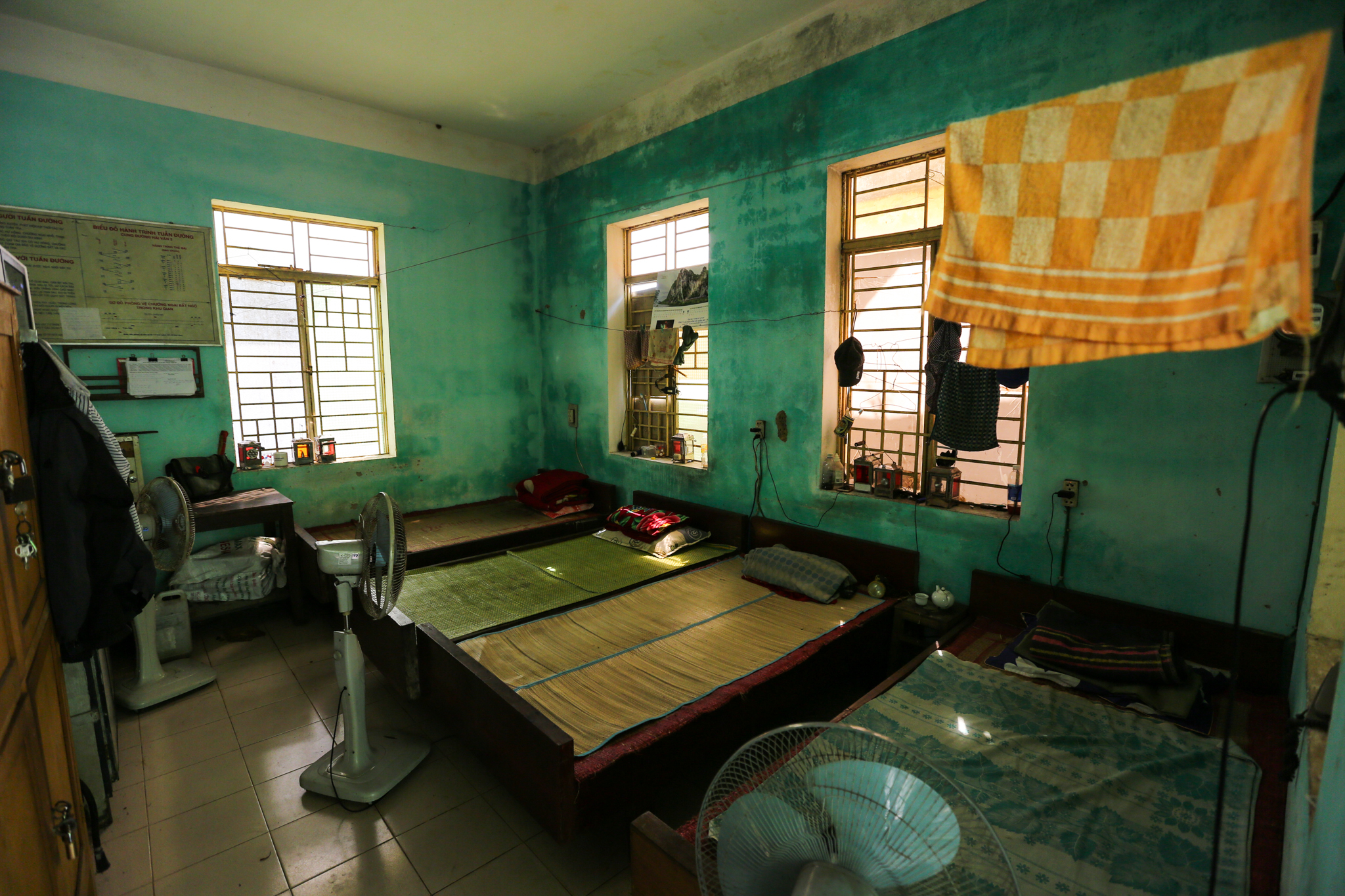 Trong căn phòng nghỉ tập thể rộng chừng 20m2, đồ đạc trong phòng cũng được tối giản hết mức. (Ảnh: Minh Sơn/Vietnam+)