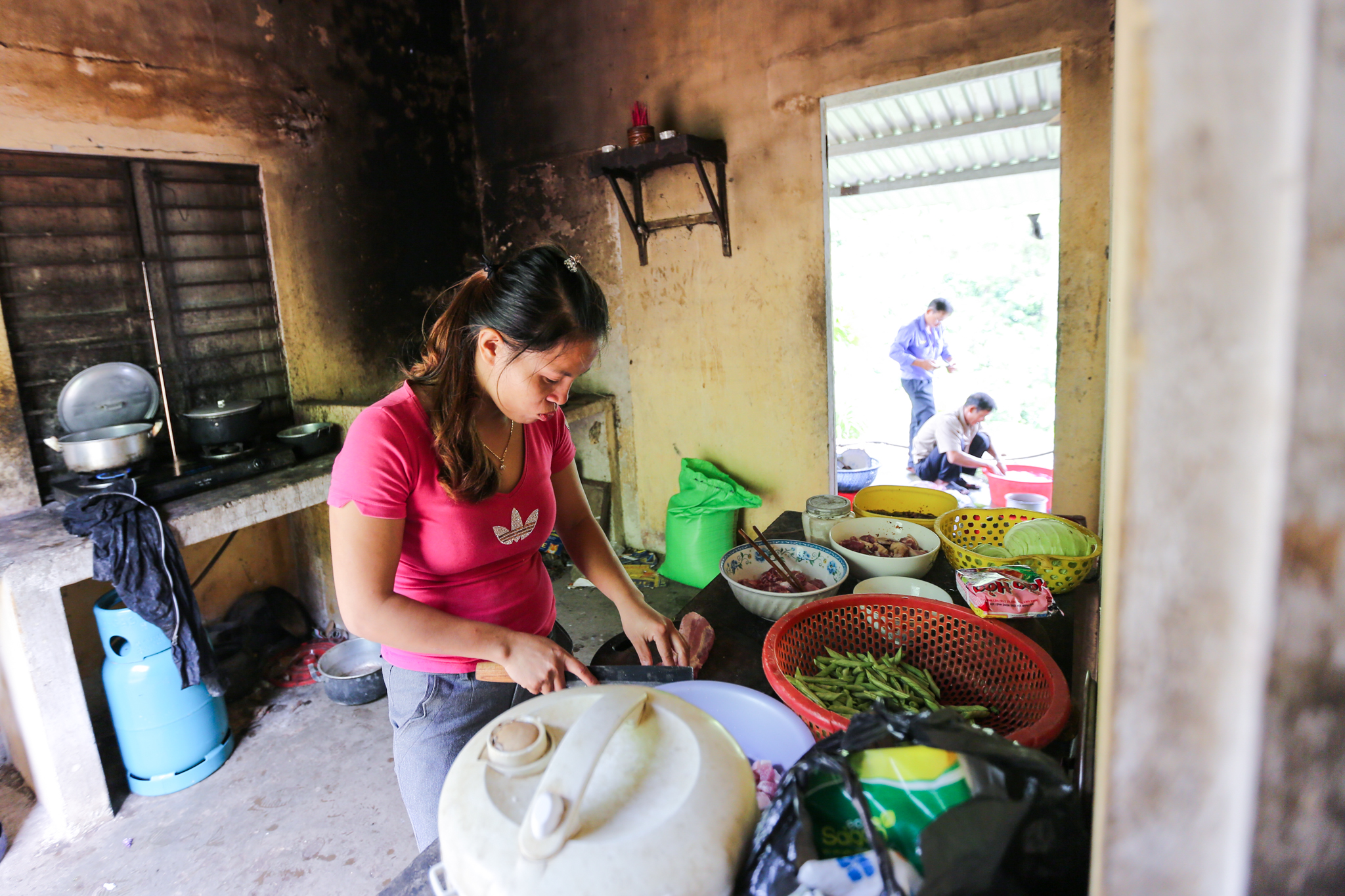 Với khẩu phần ăn của mỗi nhân viên tại khu vực này hạn hẹp, thiếu thốn, chị Hiến lại trổ tài tháo vát, khéo léo làm sao để có được một bữa ăn ngon, đầy đủ dinh dưỡng cho các anh em. (Ảnh: Minh Sơn/Vietnam+)
