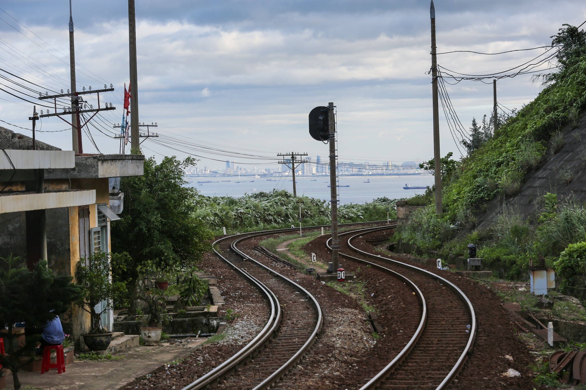 Cách ga Hải Vân chừng 300m là dãy nhà ở của các cán bộ, kỹ sư cầu đường trên đèo Hải Vân được xây quay lưng ra biển. Ba mặt còn lại chỉ toàn núi với núi. Trong những ngày xấu trời, mây mù có lúc sà sát xuống, luẩn quẩn ngay trên đầu người. Đấy là còn chưa kể tới gió, thứ đặc sản hãi hùng đặc trưng của Đệ nhất hùng quan. Gió bao vây tứ bề khu lưu trú, gió hằn học, xồng xộc muốn xô đẩy anh em. Nhìn từ trên cao, dãy nhà như bị thiên nhiên hùng vĩ nuốt gọn vào trong lòng. (Ảnh: Minh Sơn/Vietnam+)
