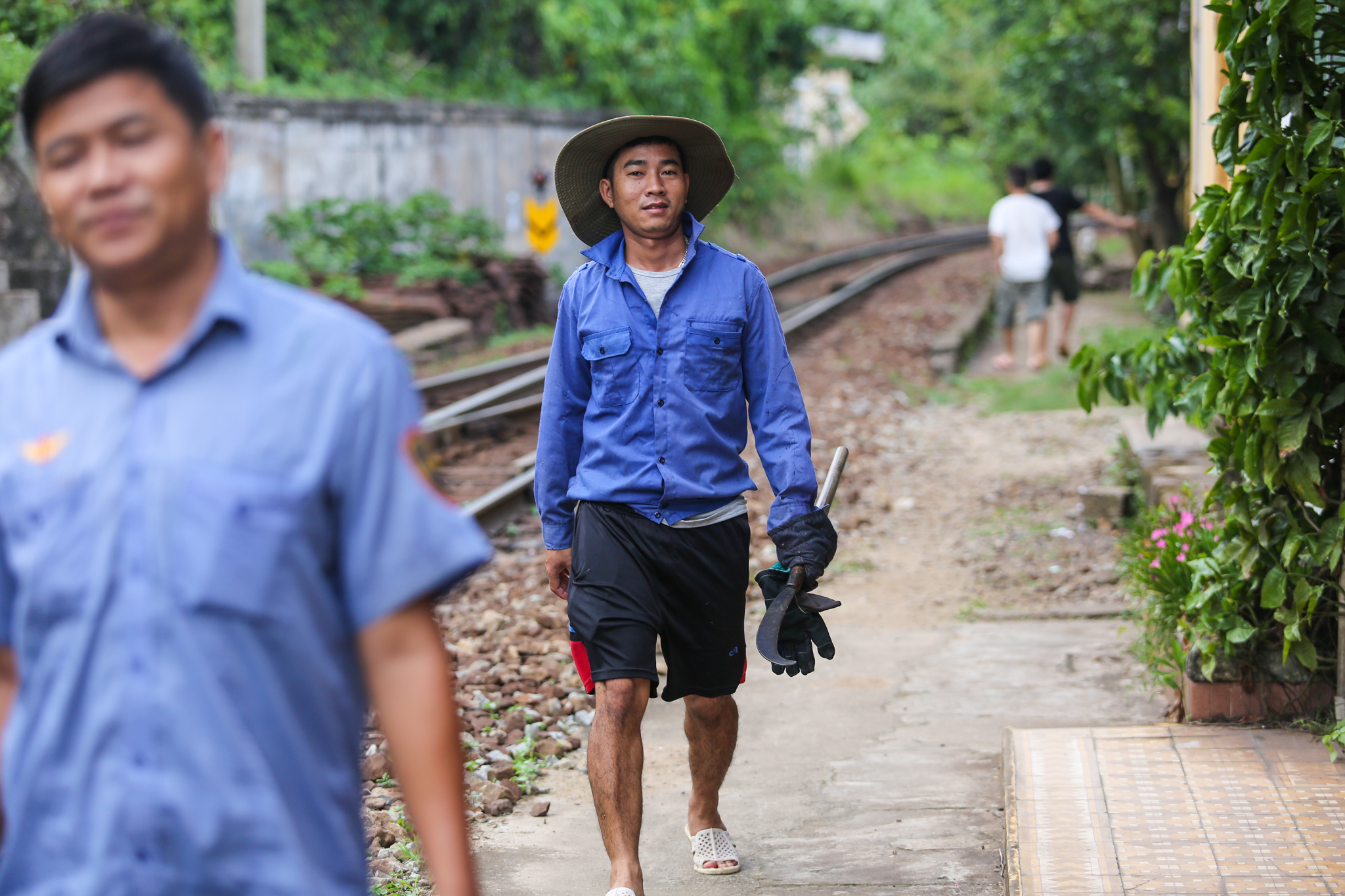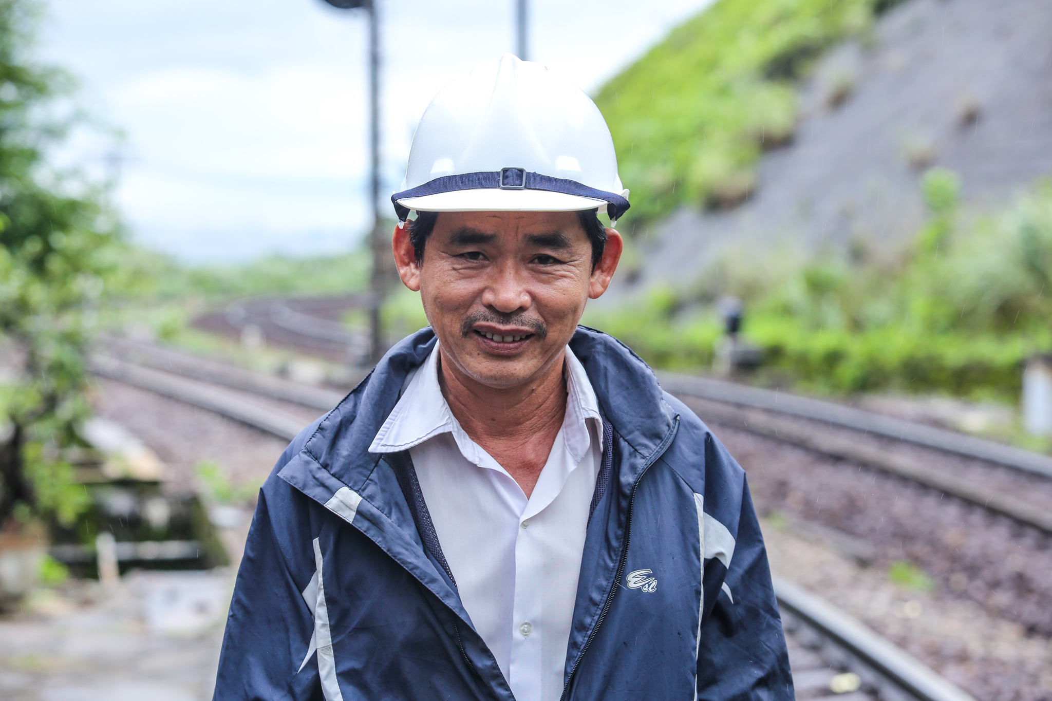 Chú Trang Tú (46 tuổi) người gốc Bình Định đã làm việc tại đây từ năm 1991. Hàng ngày chú Tú phải đi tuần dọc tuyến đường ray gần 20 cây số để đảm bảo các đoạn đường được an toàn cho mỗi chuyến tàu qua. (Ảnh: Minh Sơn/Vietnam+)