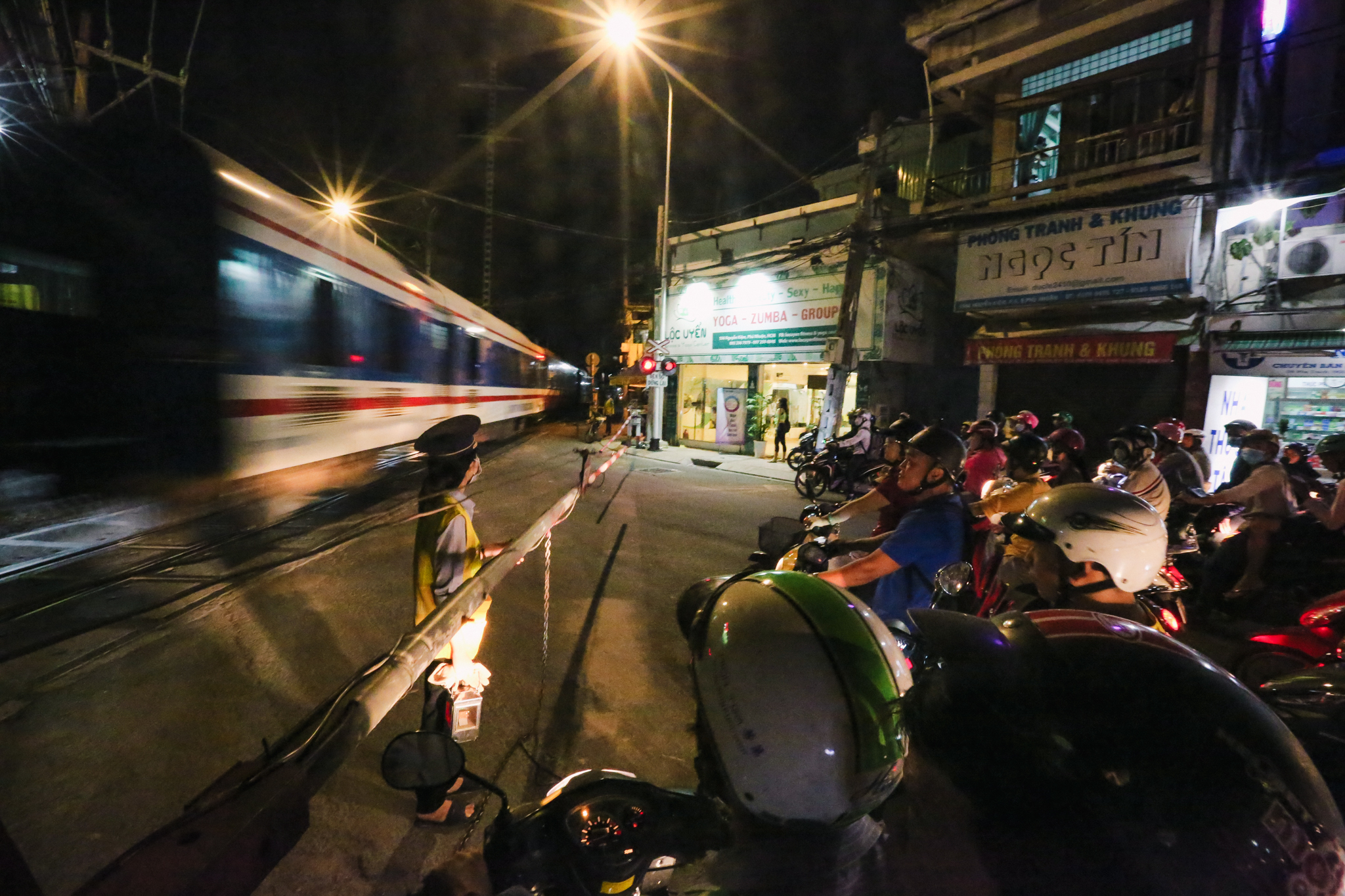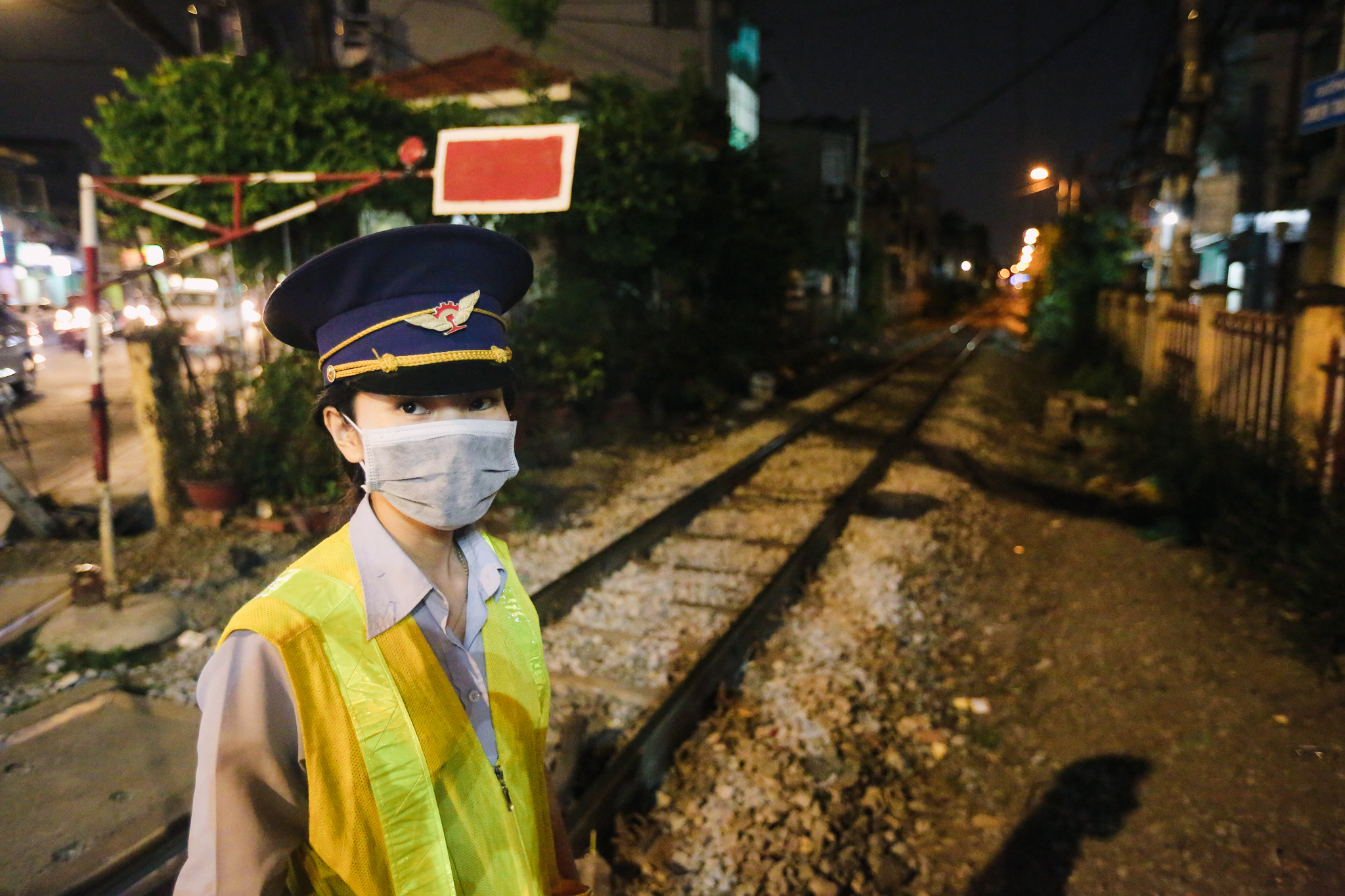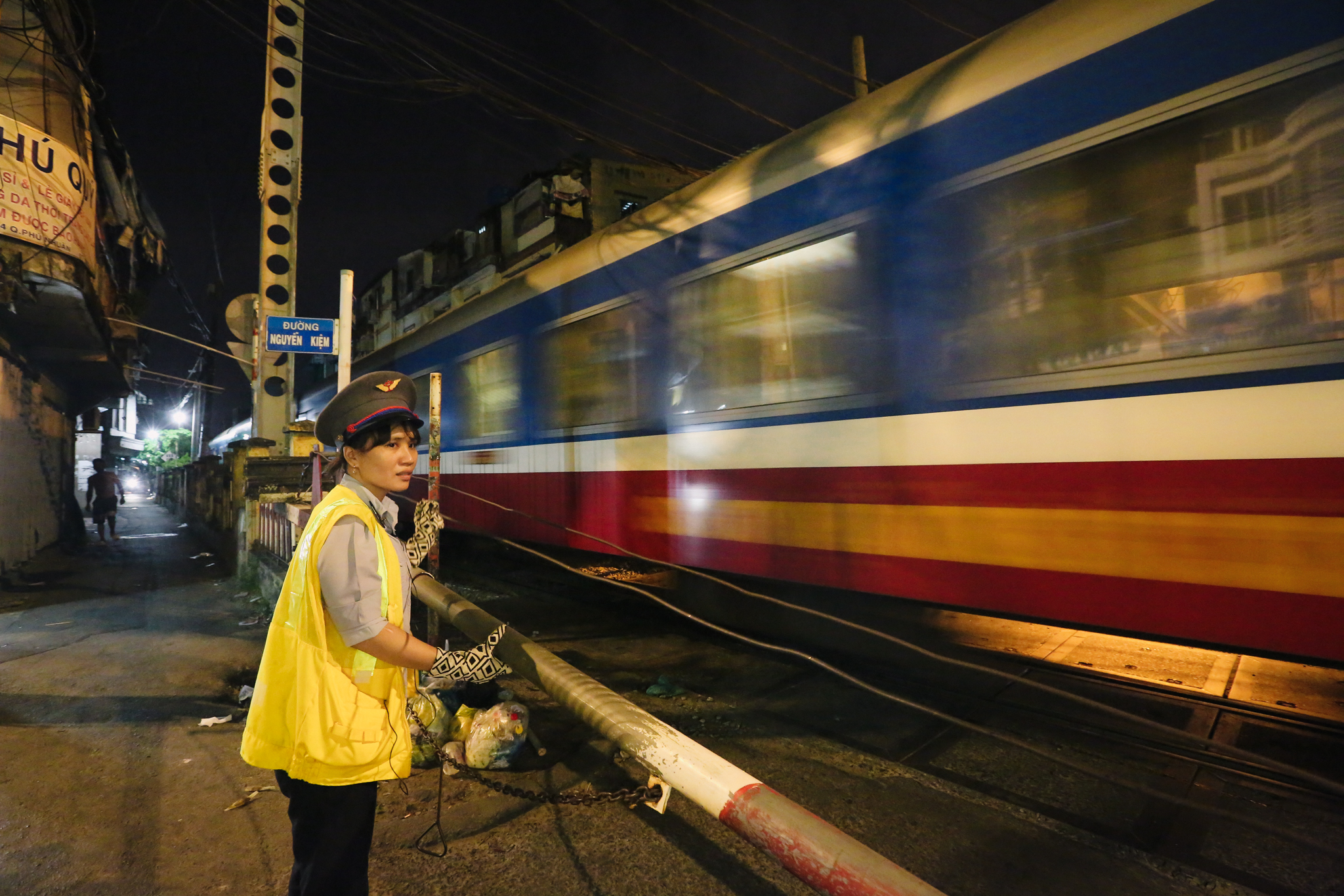 Tại gác chắn điểm giao cắt đường Nguyễn Kiệm (phường 4, quận Phú Nhuận, thành phố Hồ Chí Minh thuộc Cung chắn Gò Vấp có 12 nhân viên làm việc thường trực tại đây thì đã có tới 9 người là nữ giới. (Ảnh: Minh Sơn/Vietnam+)
