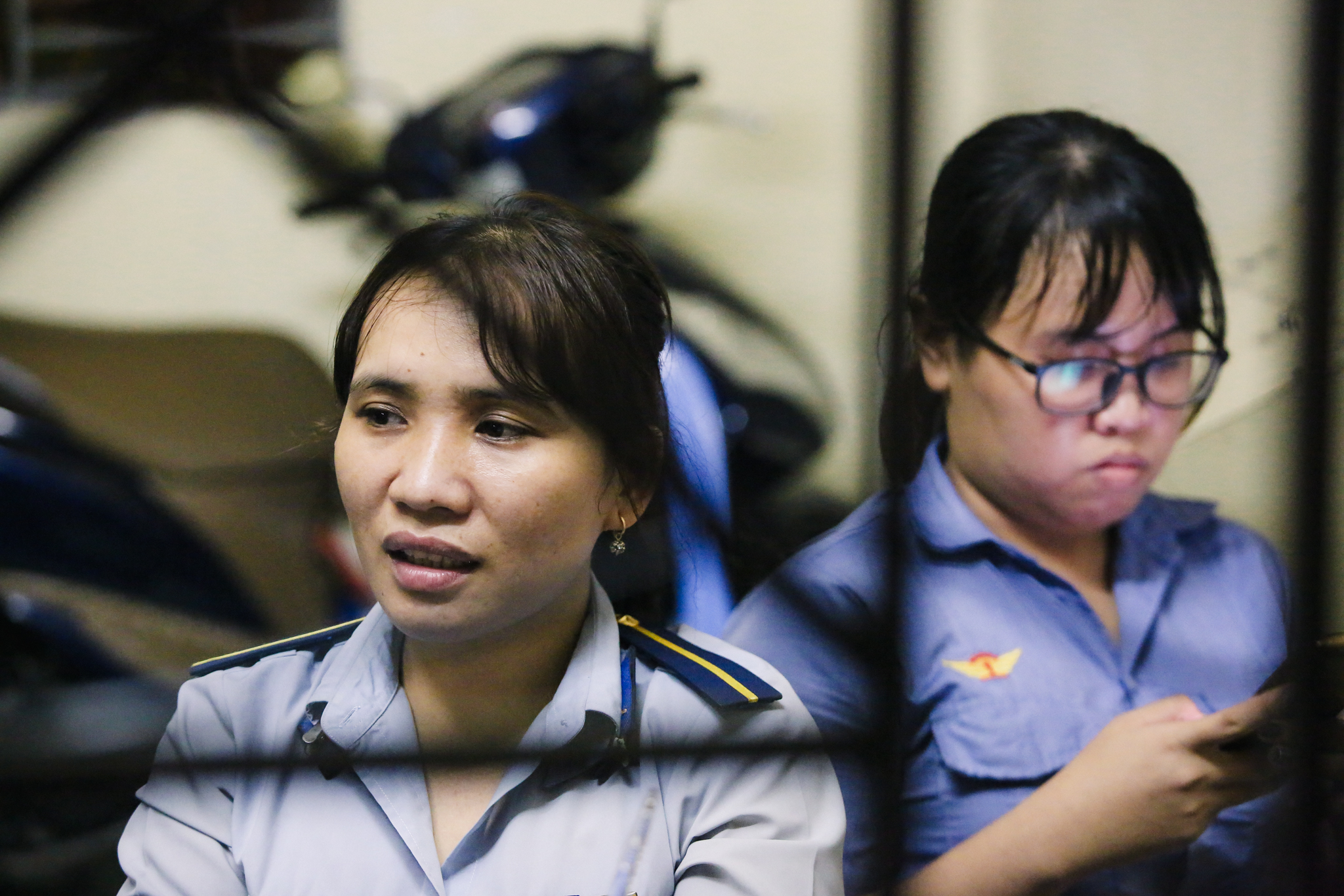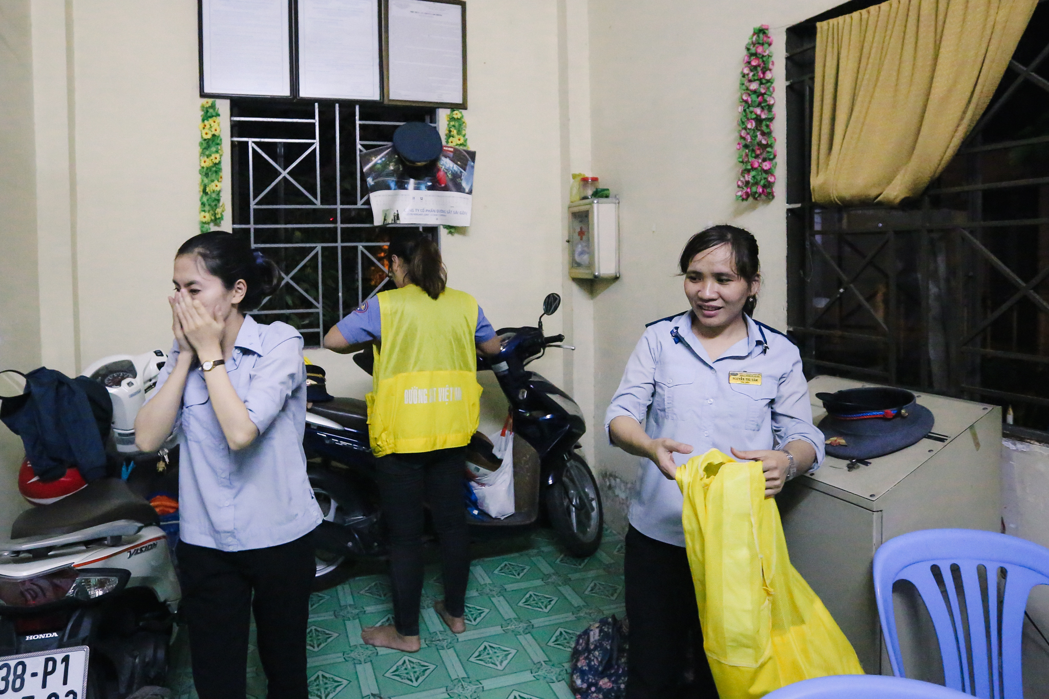 Mỗi 1 ca trực có 3 nữ nhân viên làm việc tại gác chắn. Tâm, Yến, Tuyền là những cô gái còn rất trẻ đang ngày ngày làm công việc thầm lặng này. (Ảnh: Minh Sơn/Vietnam+)