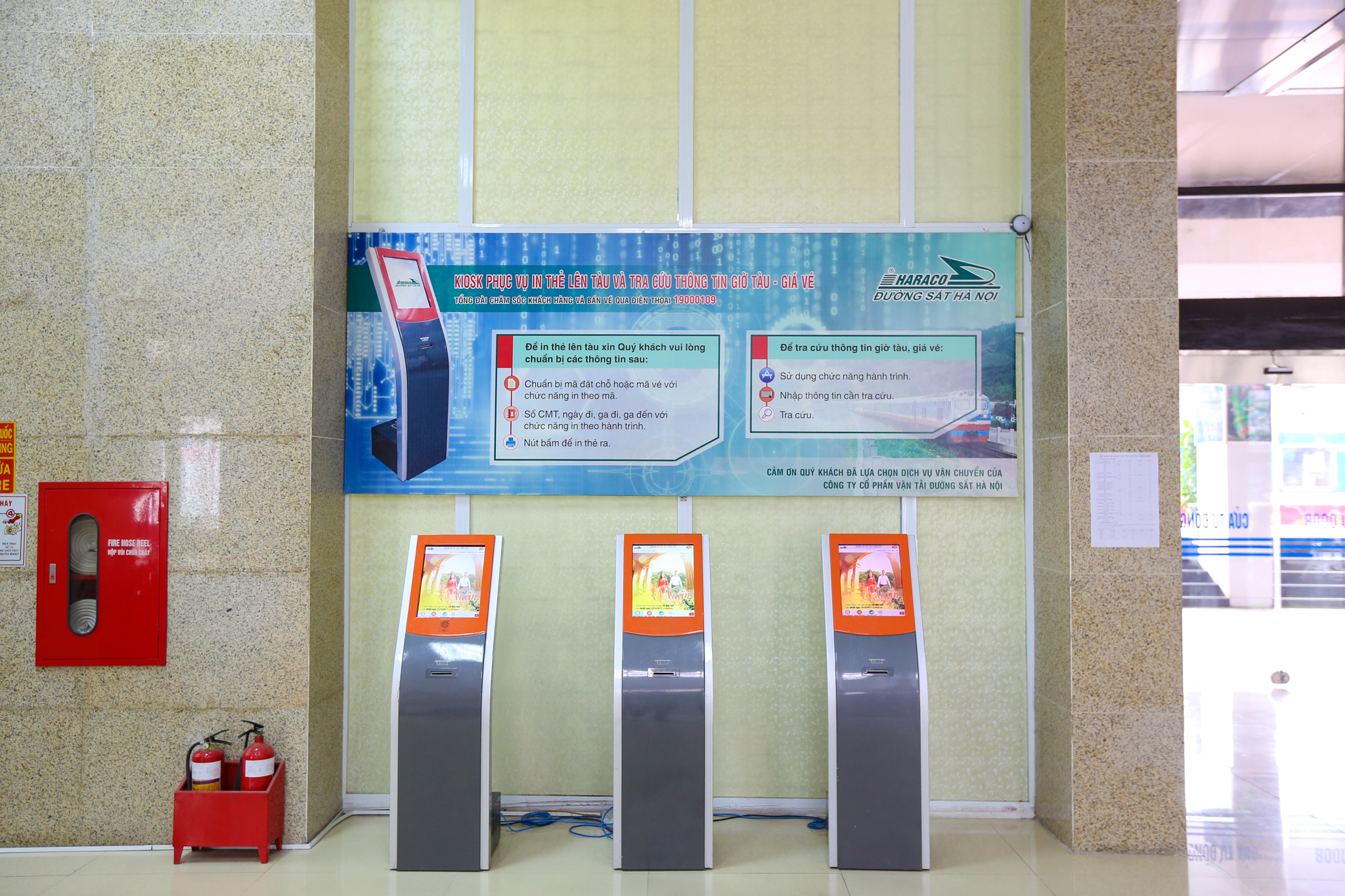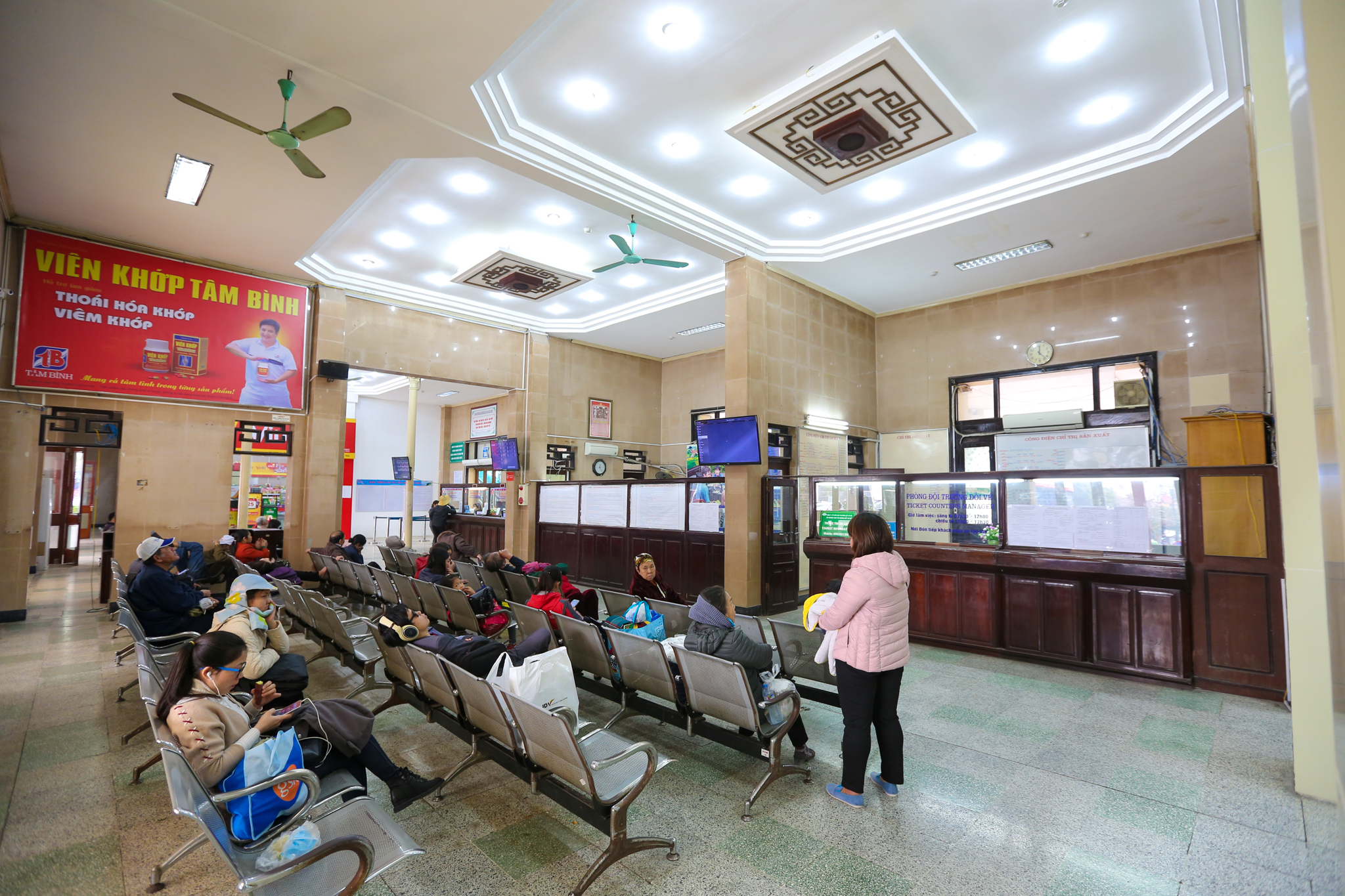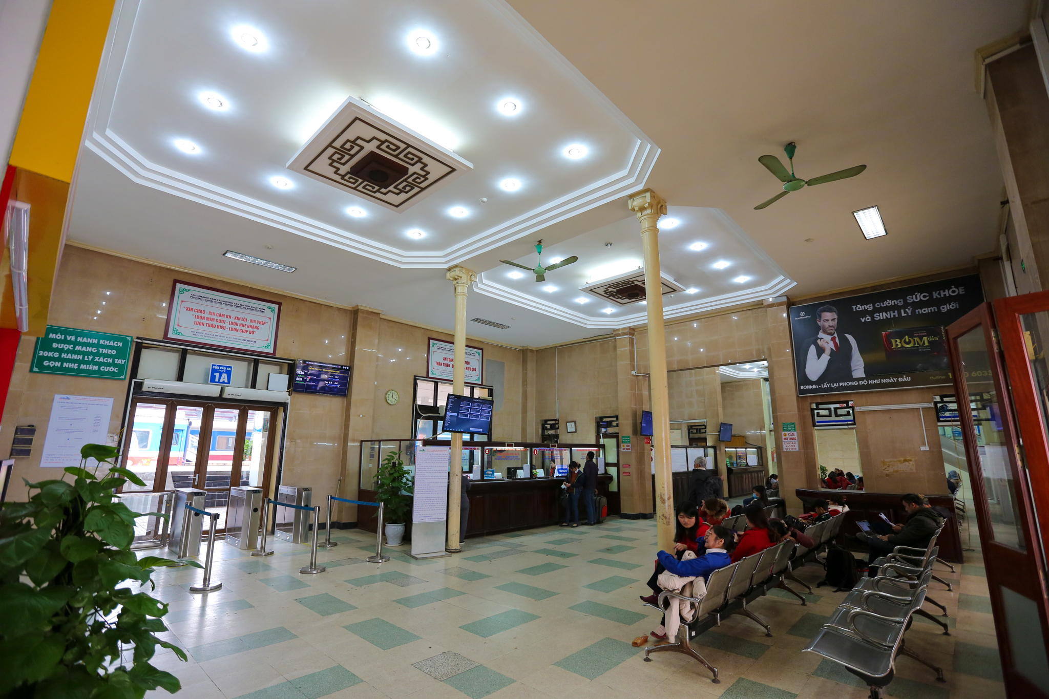 Những năm gần đây, nhà ga Hà Nội nói chung và phòng bán vé, phòng khách đã được đầu tư khang trang, với bảng chỉ dẫn điện tử, internet không dây, hệ thống điều hòa nhiệt độ. (Ảnh: Minh Sơn/Vietnam+)