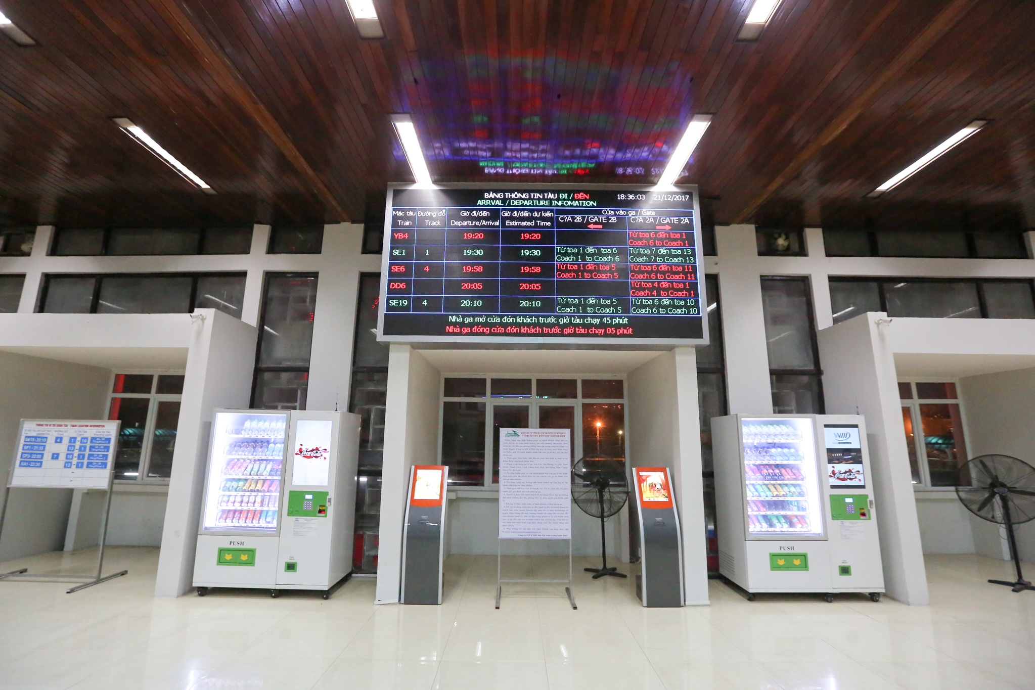 Hệ thống bảng điện tử hướng dẫn và máy bán nước tự động cũng được trang bị để phục vụ hành khách. (Ảnh: Minh Sơn/Vietnam+)