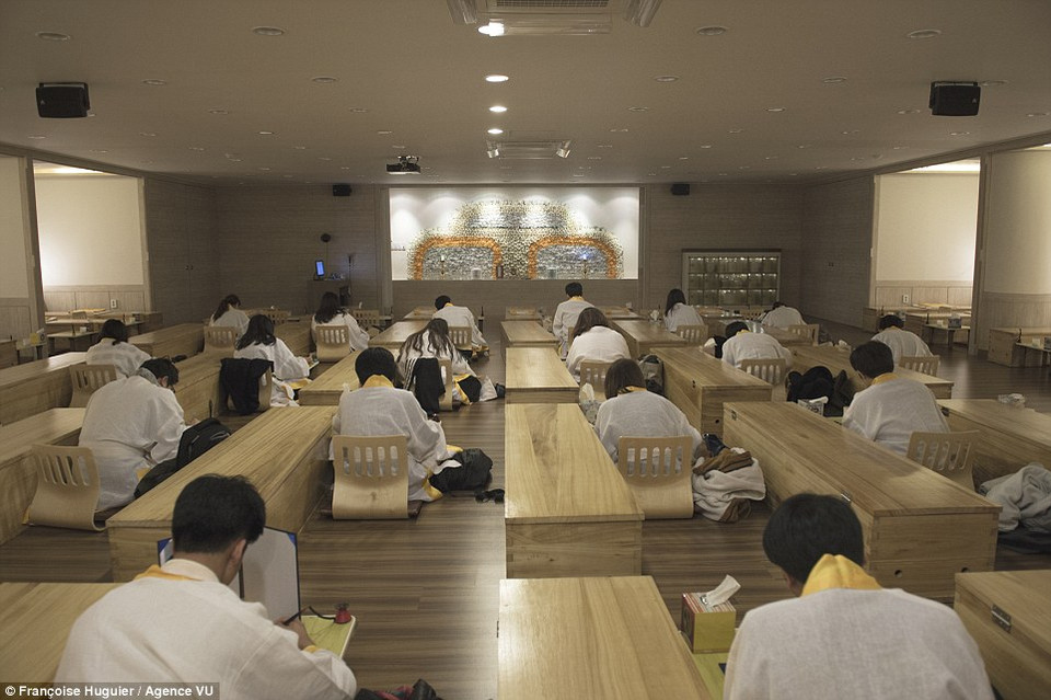 Theo chinadaily, Hàn Quốc đang rộ lên phong trào trải nghiệm cảm giác 'lên thiên đường.' Những người tham gia trải nghiệm là những người từng có ý định tự tử. Họ được đưa vào trong quan tài giống như một xác chết. (Nguồn: chinadaily)