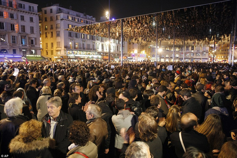 Hàng trăm người tập hợp lại ở Place de la Republique tại trung tâm thủ đô Paris. Những cuộc tụ họp tương tự cũng được tổ chức ở Rennes.