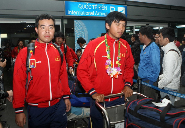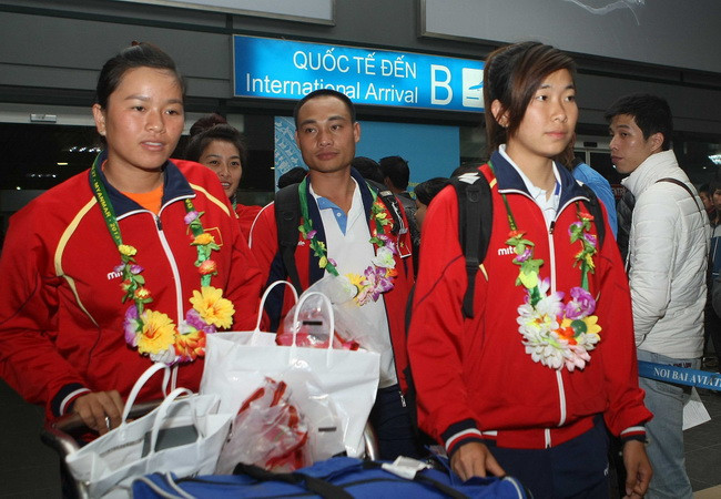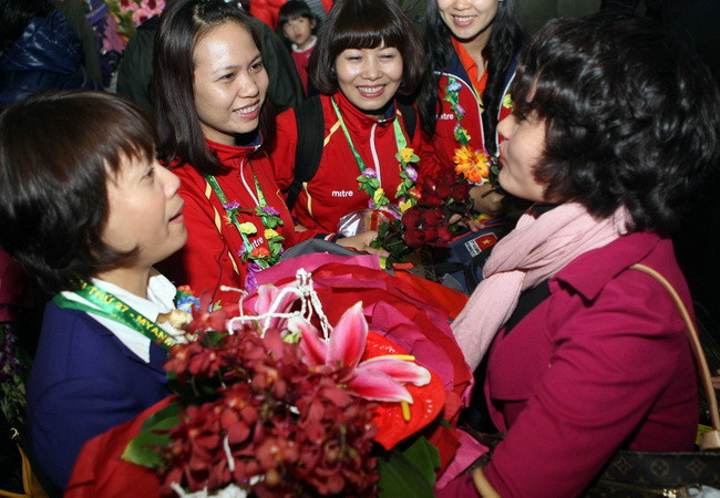 Tối 18/12, các đội tuyển bắn súng, bắn cung, đua thuyền và bóng đá đã về đến sân bay quốc tế Nội Bài sau khi hoàn thành nhiệm vụ tại SEA Games 27.